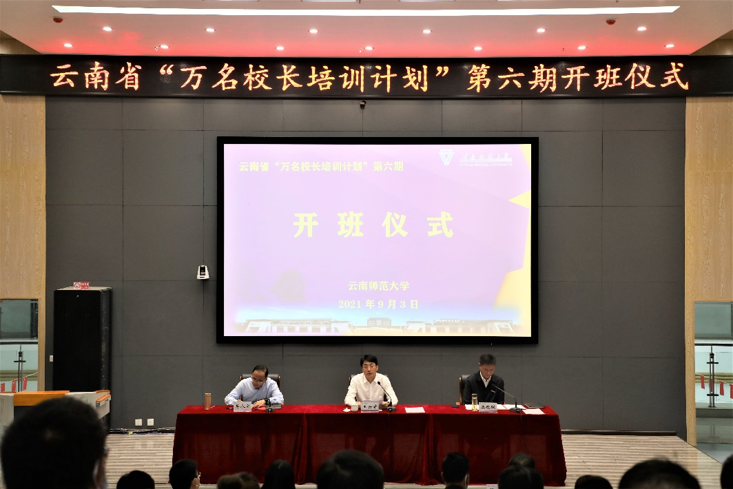 9月2日上午,云南省“万名校长培训计划”第六期培训班举行开班仪式。为积极落实疫情常态化防控工作部署,开班仪式采取线上线下同步进行的方式,主会场设在我校呈贡主校区国家教师教育教学实验中心报告厅,分会场设在国家教师教育教学实验中心20个培训班教室。云南省教育厅厅长、党组书记、省委教育工委副书记王云霏,云南省教育厅党组成员、副厅长赵德荣,365英国上市官网党委书记蒋永文、校长王德强、党委副书记张玮、副校长武友德,省教育厅教师工作处,我校党办、校办、“万名校长培训计划”项目办公室负责人以及来自全省16个州(市)的第六期1002名参训学员参加了开班仪式。开班仪式由王德强校长主持。