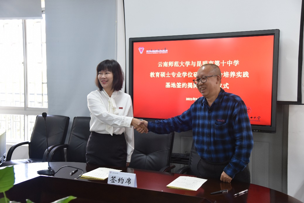 随后,研究生院骆华松院长和昆十中谢晓玲校长共同签署了《共建教育硕士专业学位研究生联合培养实践基地协议》。研究生院罗利佳副院长宣读昆明市第十中学谢晓玲等27名教师遴选为365英国上市官网校外教育硕士专业学位研究生指导教师的决议,安学斌副校长为新遴选的导师代表颁发了聘书。