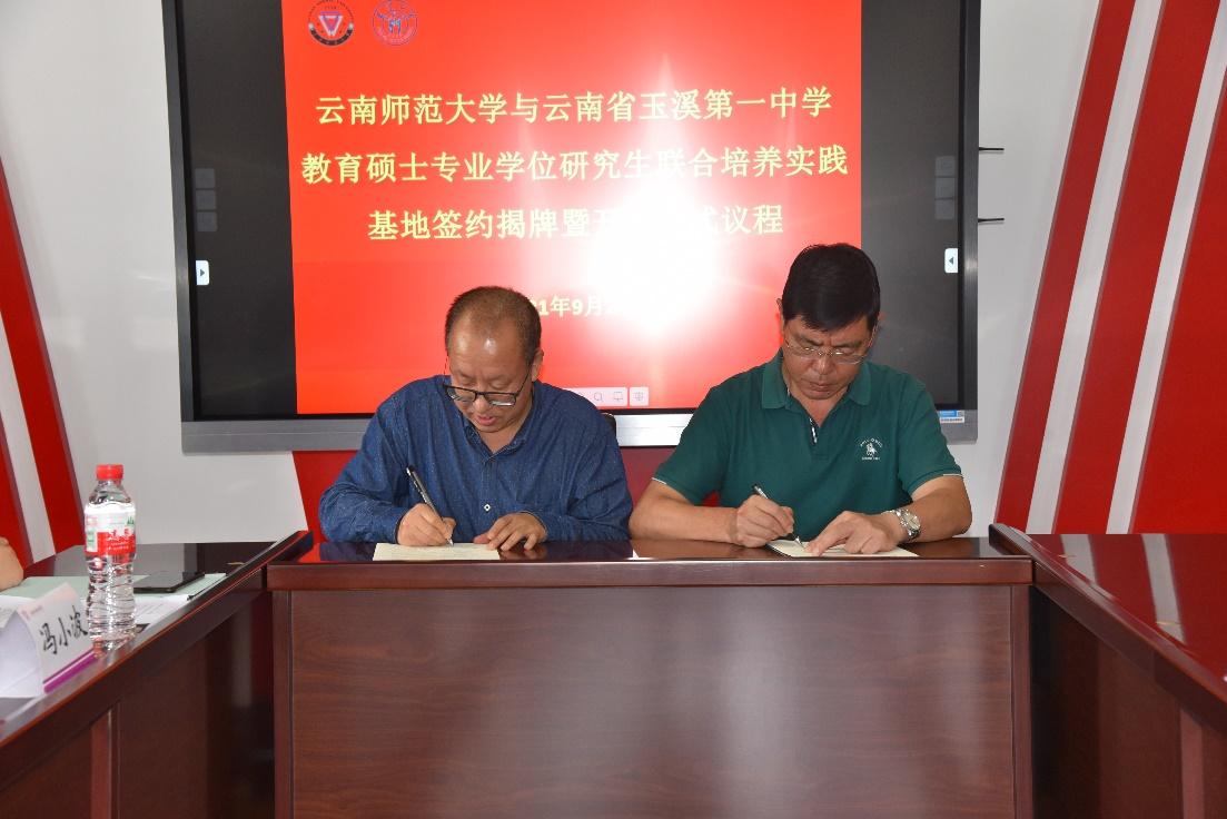 随后,研究生院骆华松院长和玉溪一中李富春校长共同签署了《365英国上市官网与云南省玉溪一中共建教育硕士专业学位研究生联合培养实践基地协议》。