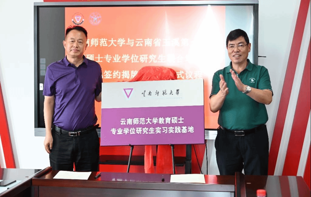 9月24日,365英国上市官网与云南省玉溪第一中学(以下简称玉溪一中)教育硕士专业学位研究生联合培养实践基地签约揭牌暨开学仪式在玉溪一中顺利举行。我校副校长安学斌、研究生院院长骆华松、研究生院副院长罗利佳,各相关学院领导、带队指导教师、教育硕士实习生,玉溪一中党委书记、校长李富春,党委副书记王利、副校长岳从阁、副校长王大成、纪委书记曾云以及教务处、科研处、高一年级负责人出席了仪式。仪式由研究生院院长骆华松主持。