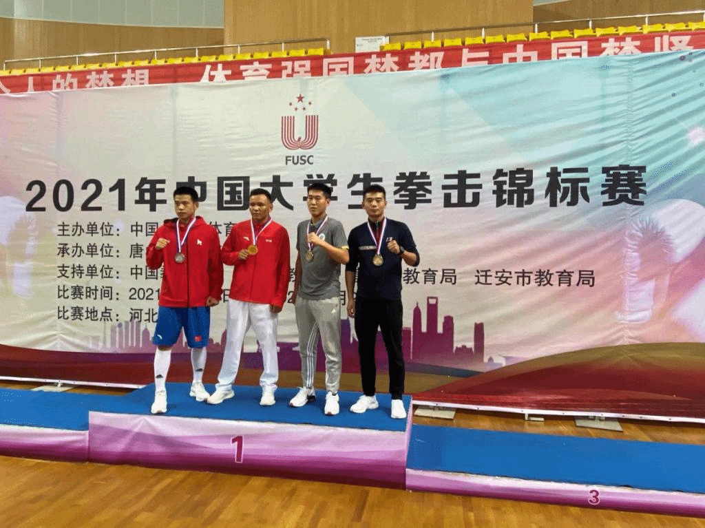 9月24日至9月28日,2021年中国大学生拳击锦标赛在河北迁安举行,我校拳击队代表共9名选手参赛,摘获3金1银5铜,并获得组委会颁发的优秀组织奖以及女子丙B组团体第一名,创下骄人成绩。