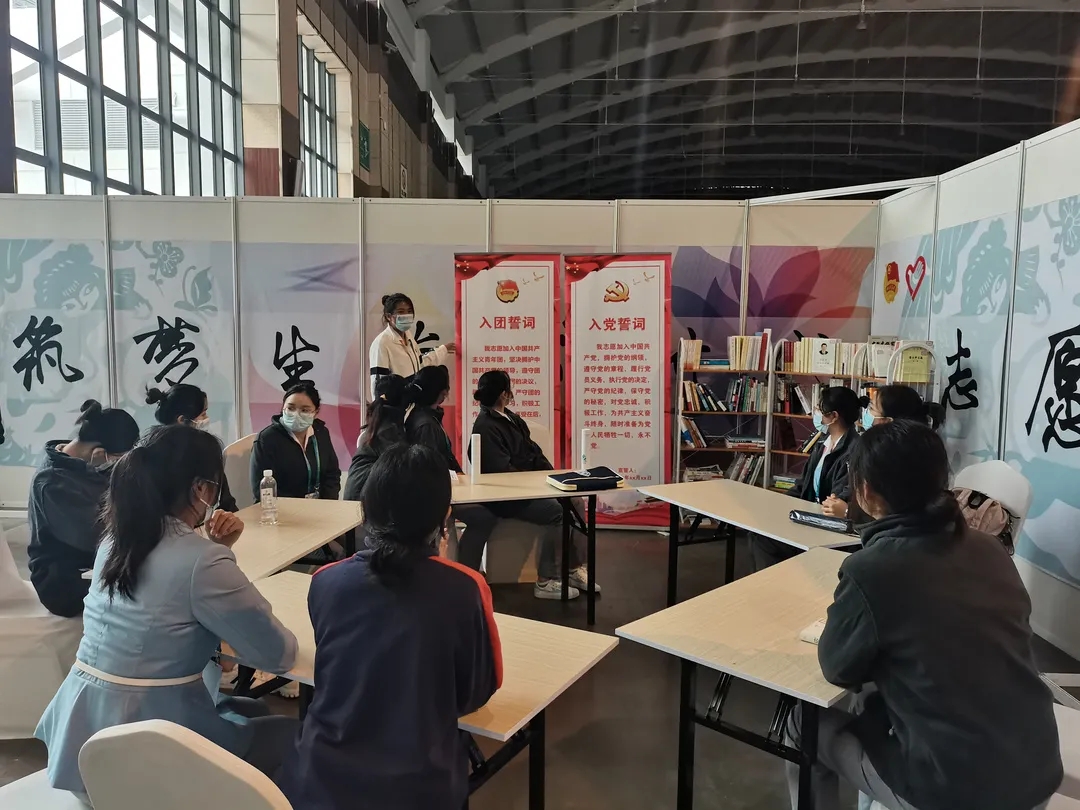 10月11日:在志愿者之家举行主题党日、主题团日活动,志愿者们在图书角开展学习交流。