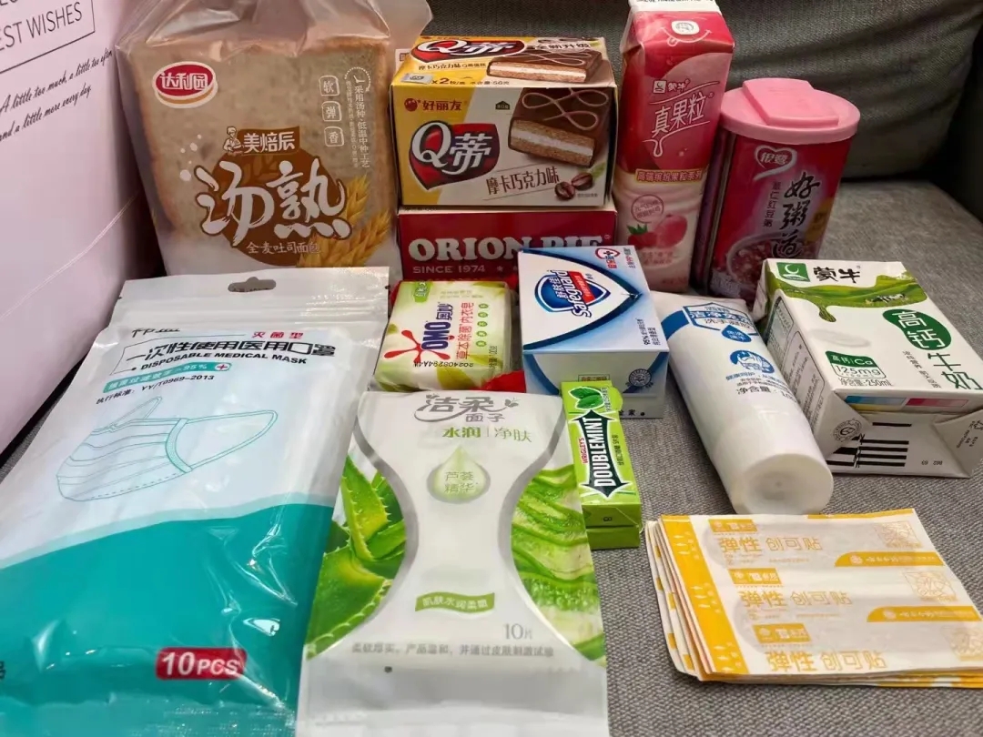 学校还贴心为志愿者们准备了保暖物品、能量补充食物、医药品等爱心礼包,为志愿者们提供细致的保障。