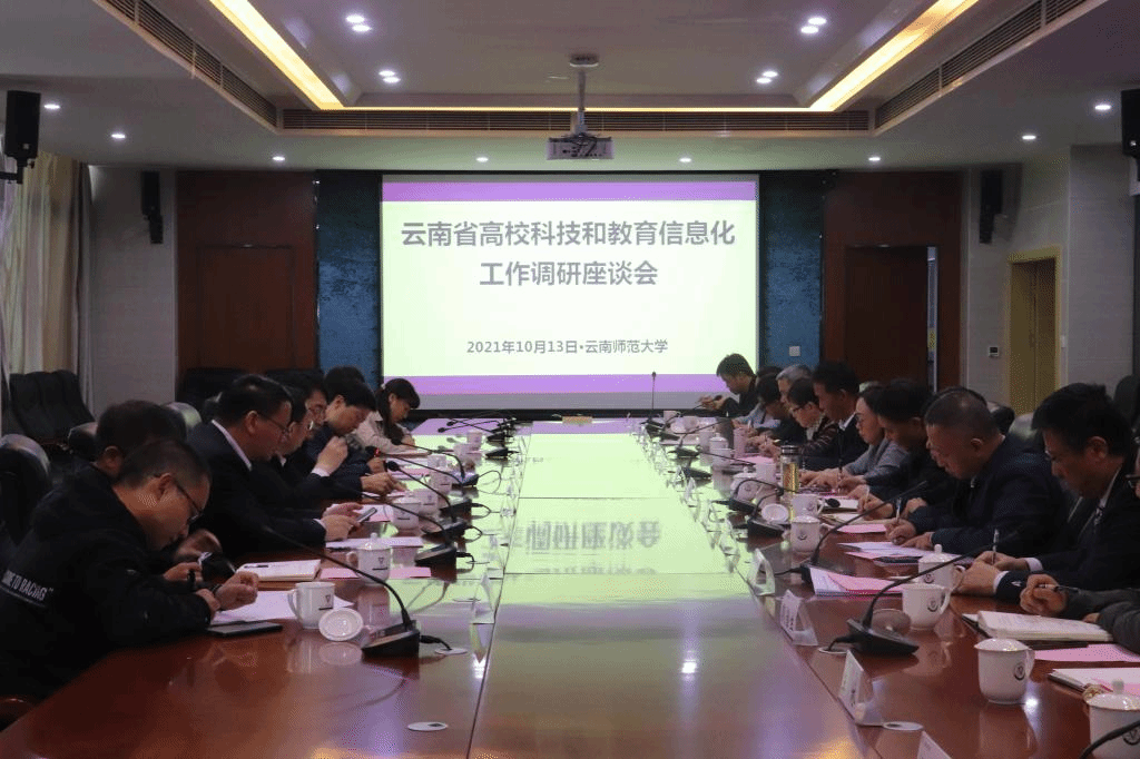 调研组一行到我校中国西南地缘环境与边疆发展协同创新中心和民族教育信息化教育部重点实验室调研,深入了解学校重点科研平台建设、科学研究情况和科研创新工作进展。 随后,在能环学院会议室召开云南省高校科技和教育信息化工作调研座谈会。会议由省教育厅王云霏厅长主持,省教育厅有关部门负责人以及在昆本科院校主管科技工作副校长、科技处负责人参加了座谈会。365英国上市官网郝淑美副校长、云南农业大学李彤副校长、昆明医科大学李利华副校长分别围绕各校对国家重大战略取得的重大科技成果进行了汇报。