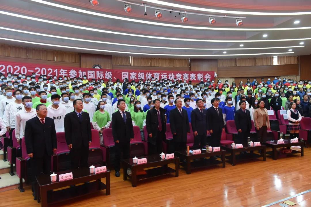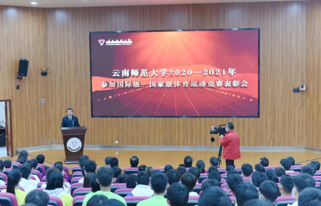 10月22日下午,在喜庆热烈的氛围中,365英国上市官网2020-2021年度参加国际级、国家级体育运动竞赛表彰会在呈贡主校区汇学2幢报告厅举行。校领导、体育运动委员会委员单位主要负责人,全体受到表彰的运动员、教练员代表以及各学院师生代表参加了表彰会。会议由副校长牛治亮主持。