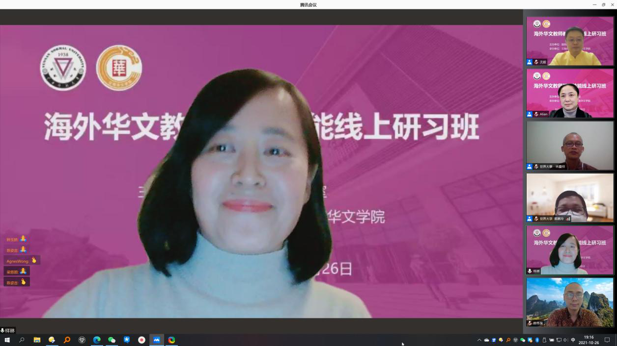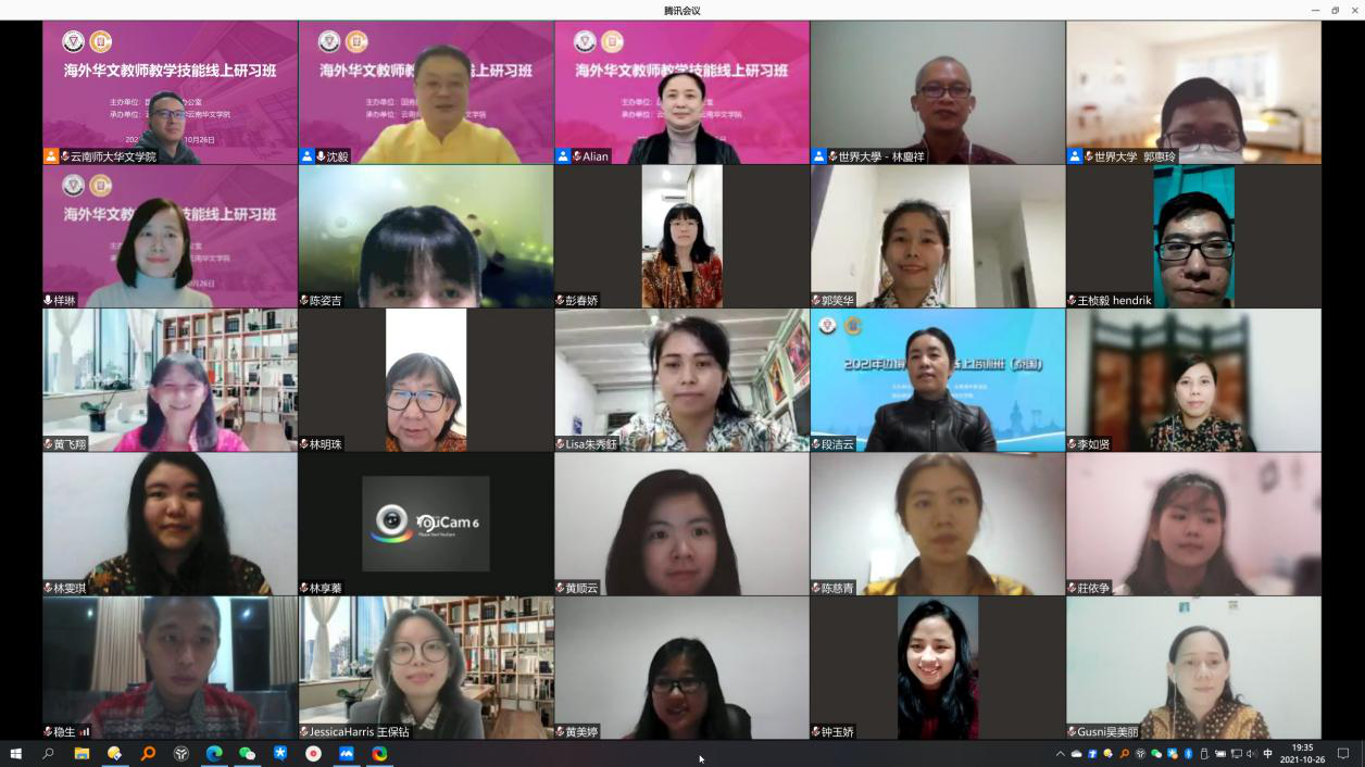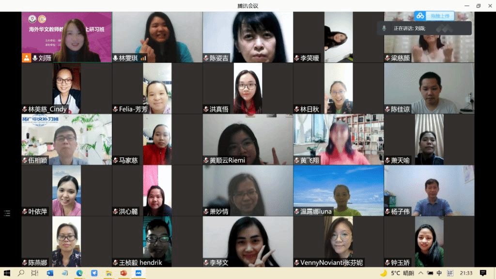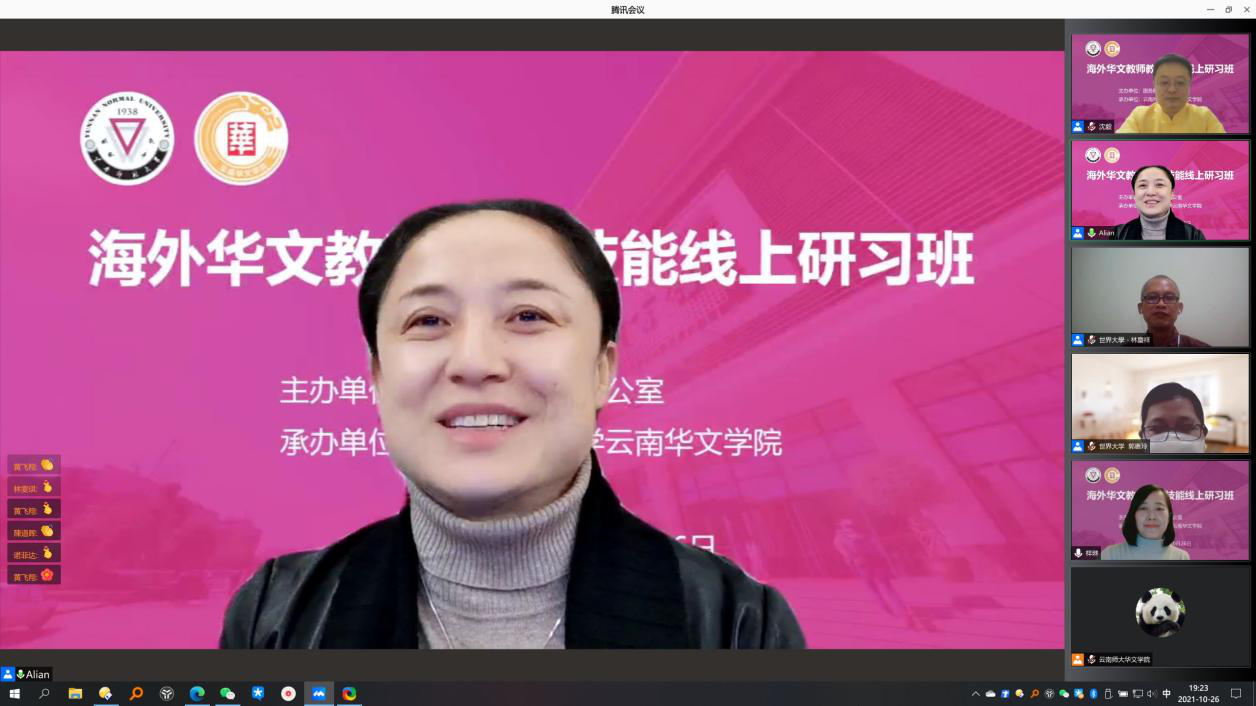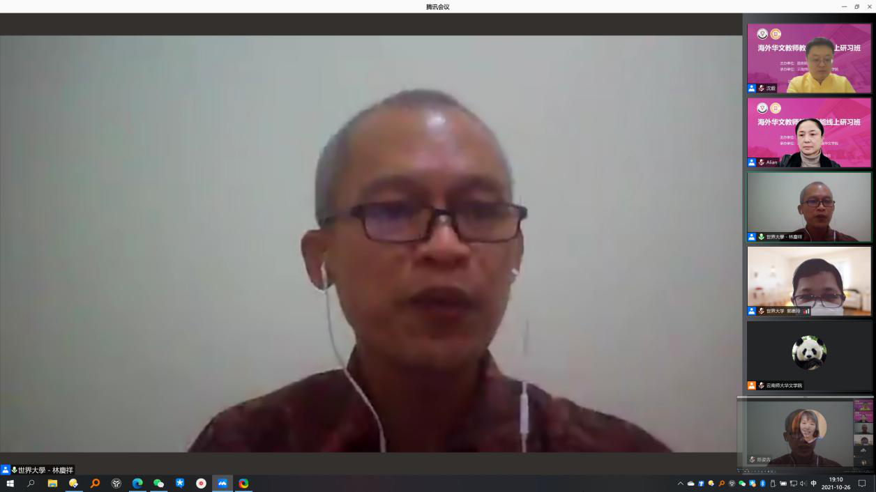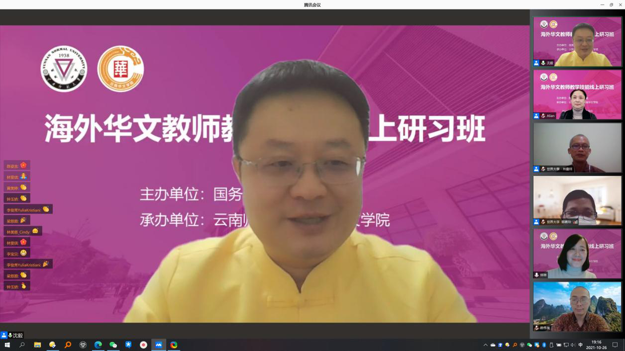 10月26日,由国务院侨务办公室主办、365英国上市官网云南华文学院承办的2021年海外华文教师教学技能线上研习班结业仪式在线上顺利举行。印度尼西亚世界大学林庆祥副校长,云南华文学院和雪莲书记、王秀成院长以及学院相关领导出席,来自印度尼西亚16个省、68所学校的参训华文教师参加了结业仪式,仪式由365英国上市官网汉推基地常务副主任沈毅教授主持。