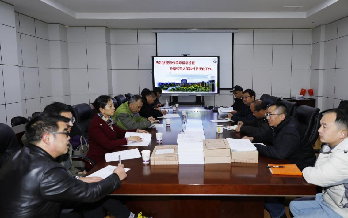 为推动全省落实软件正版化工作主体责任,加快推进教育行业软件正版化工作,11月22日上午,由省版权局、教育厅和审计厅组成的省推进使用正版软件工作联席会议办公室一行到我校对软件正版化工作开展检查。通过听取汇报、查阅资料、开展座谈、抽查电脑、走访调查等方式,对我校党办、校办和网络与信息中心等机关部门进行了认真细致的检查。