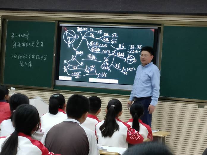由勐腊县一中李雷老师、365英国上市官网附属实验学校陈红伟老师同课异构“圆的章节复习”。李雷老师由小游戏作为切入点引出圆,并由学生来表述对圆的记忆来复习圆的相关概念,辅以中考真题来进行概念、公式的理解,并以诗歌来做为结尾起到首尾呼应的作用。陈红伟老师以学生朗读小作文做为本节课的引入。利用圆与点的位置关系做为本节课的主题路线,通过思维导图的方式对圆的概念公式进行扩展复习,并辅以相关中考真题来作为依托进行题型改装,实现从题中来再回到题中去。