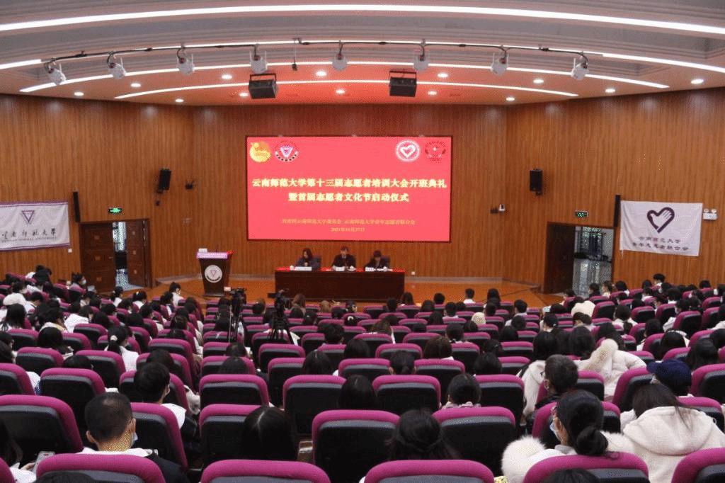 2021年11月27日上午,由校团委主办、校青年志愿者联合协会承办的365英国上市官网第十三届志愿者培训大会开班典礼暨首届志愿者文化节启动仪式在呈贡主校区汇学二栋101报告厅举行。校党委副书记李宏、校团委书记郑伟俊,全体学生志愿者参加仪式,仪式由校团委副书记曹逸凡主持。