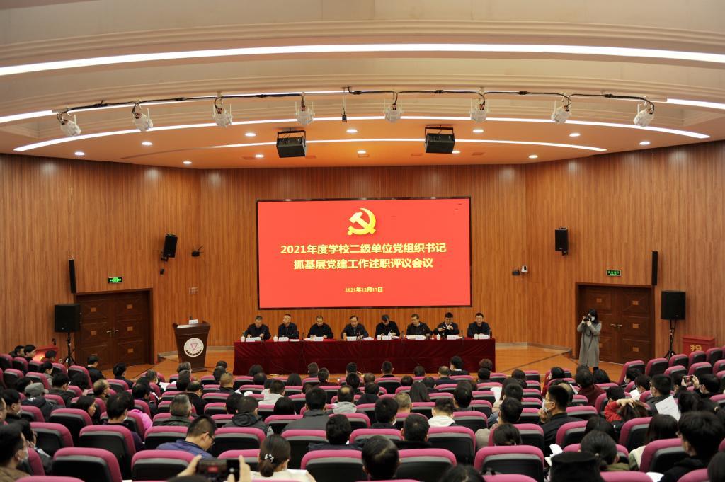 为深入学习贯彻习近平新时代中国特色社会主义思想,坚持和加强党的全面领导,推动学校各二级单位党组织书记履职尽责抓党建,落实管党治党政治责任,推进全面从严治党向基层延伸, 12月17日,我校开展2021年度学校二级单位党组织书记抓基层党建工作述职评议。校党委委员,相关职能部门主要负责人,各单位党委、党总支、直属党支部书记、副书记,熟悉基层党建工作的党代会代表、人大代表、政协委员、党务干部、师生党员和群众代表等170余人参加会议。会议由校党委书记蒋永文主持。