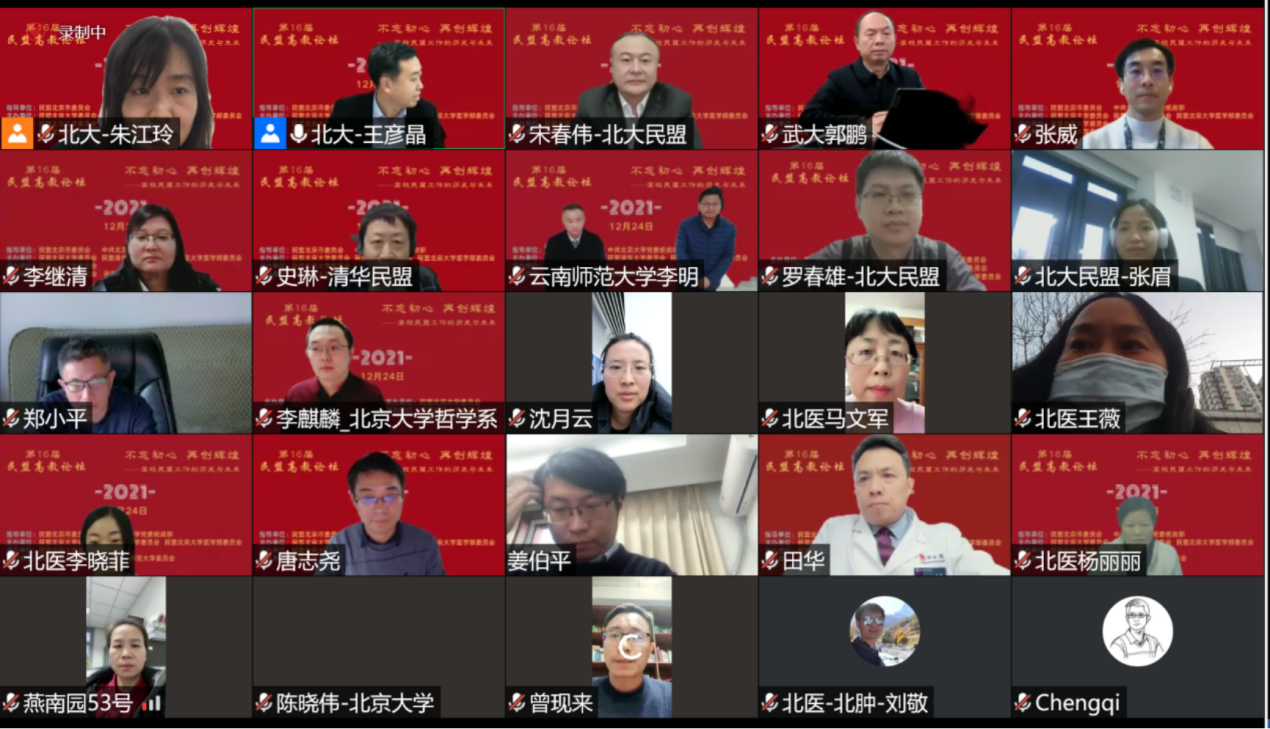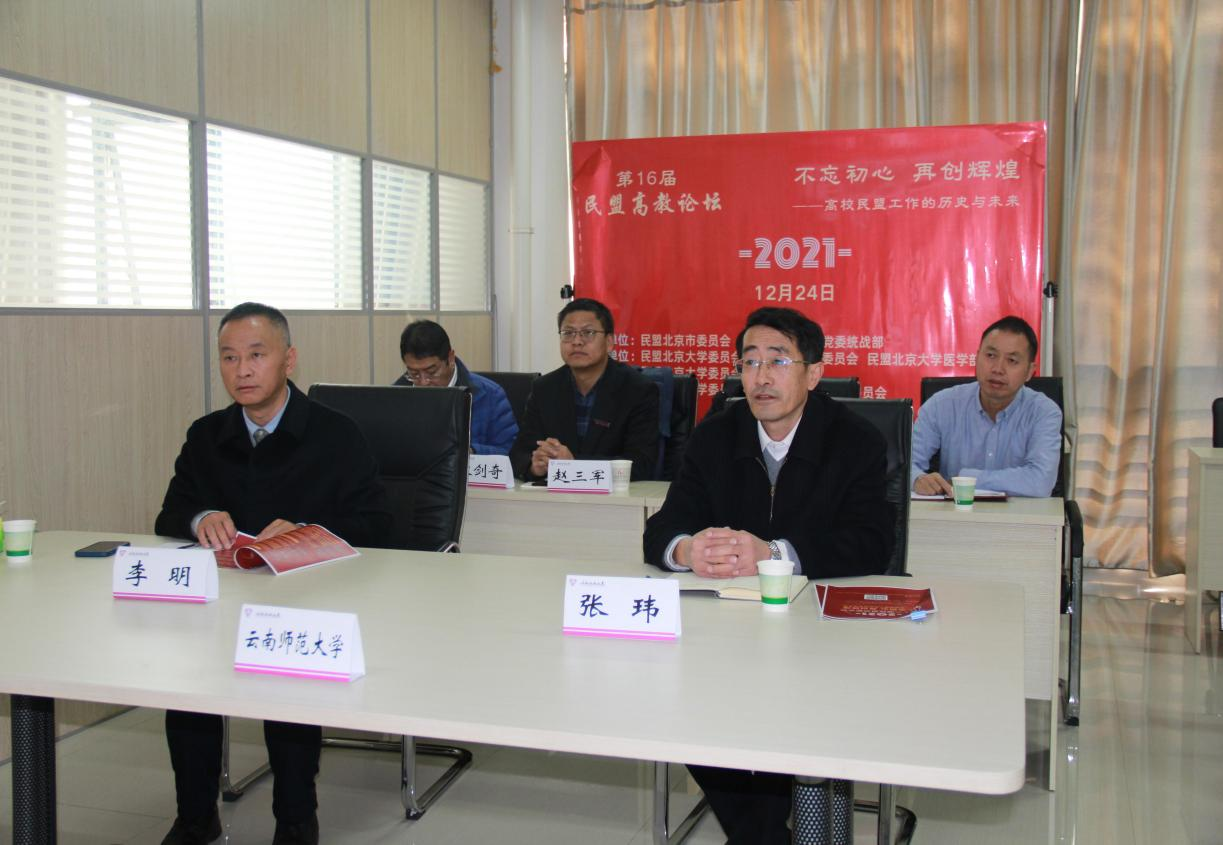 2021年12月24日,由民盟北京大学委员会、民盟清华大学委员会、北京大学医学部委员会“两校三委”主办,民盟北京大学委员会承办,民盟365英国上市官网委员会、民盟武汉大学委员会作为特邀单位共同协办的第十六届民盟高教论坛通过线上方式举行。校党委副书记、统战部部长张玮教授、民盟365英国上市官网委员会主委李明教授以及云南师大民盟盟员代表、校党委统战部人员参加了论坛。