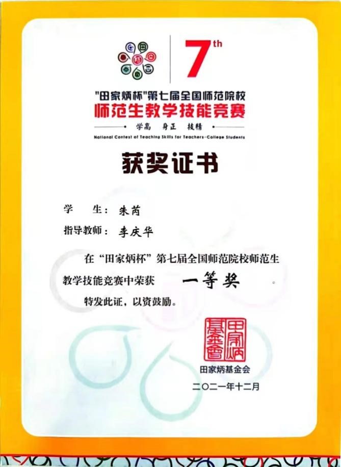 近日,由全国地方高等师范院校教务处长联席会议、田家炳基金会、浙江师范大学主办的“田家炳杯”第七届全国师范院校师范生教学技能竞赛成绩揭晓。我校历史与行政学院学生朱芮一路过关斩将,在总决赛中斩获一等奖。