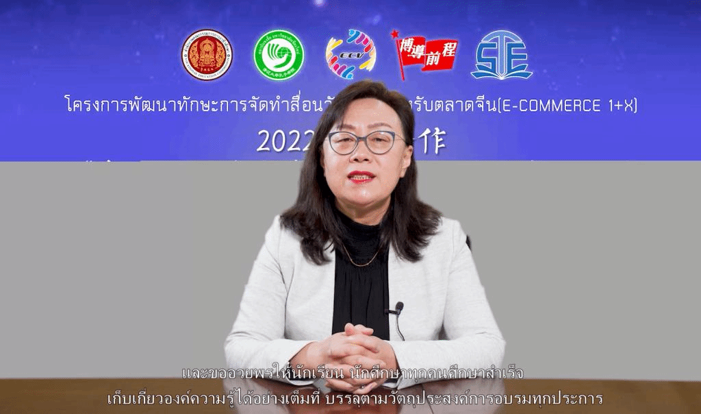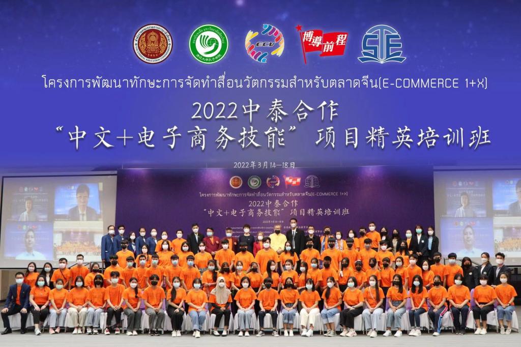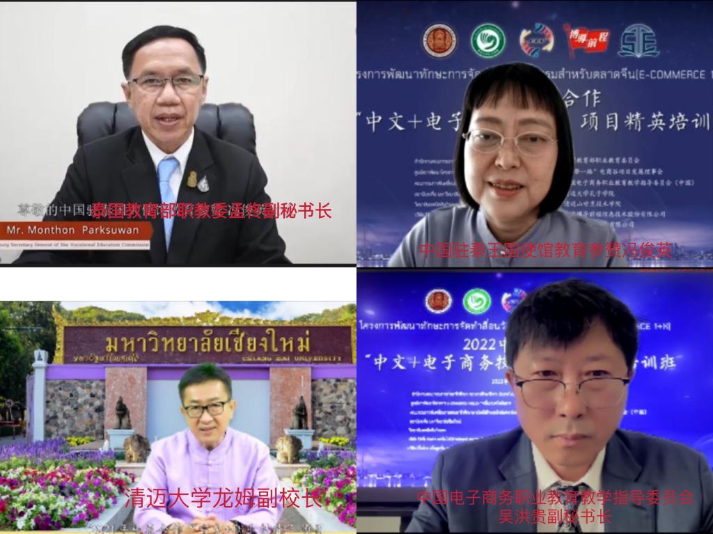 2022年3月14日,2022年中泰合作“中文+电子商务技能”项目精英培训班于泰国清迈大学学术中心正式开班。我校郝淑美副校长、泰国教育部职业教育委员会孟佟•帕素万(Mr.Monthon Parksuwan)副秘书长、中国驻泰国大使馆冯俊英参赞、中国电子商务职业教育教学指导委员会陆春阳副主任、清迈大学龙姆副校长、北京博导前程信息技术股份有限公司段建董事长、清迈大学孔子学院中泰方院长等领导和来自中泰院校教师、参训学生以及企业代表近100人共同出席开班仪式。