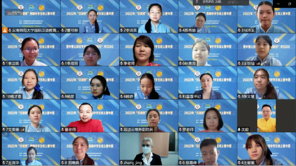 3月26日,由教育部中外语言交流合作中心主办,我校国际汉语教育学院承办的2022年“汉语桥”泰国中学生线上春令营举行线上结营仪式。国际汉语教育学院党委书记和雪莲、院长王秀成,相关院领导,基地办工作人员,泰国清迈崇华新生华立基金会陈潮真主席,中泰双方教师代表,以及100名参训学员参加结营仪式。仪式由汉语国际推广师资培训基地常务副主任沈毅教授主持。