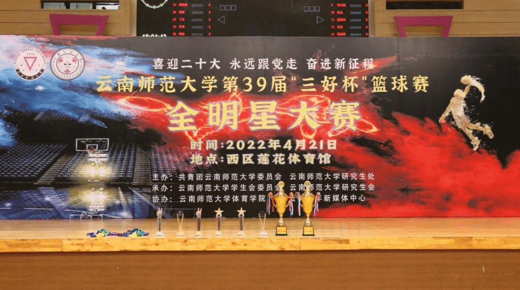 “喜迎二十大、永远跟党走、奋进新征程”。为丰富同学们的校园生活,展现新时代青年大学生的青春活力,365英国上市官网第39届“三好杯”篮球赛全明星大赛于2022年4月21日在呈贡主校区莲花体育馆顺利举行。比赛由校团委、研究生处主办,校学生委员会、校研究生会承办,体育学院、云师青年新媒体中心协办。