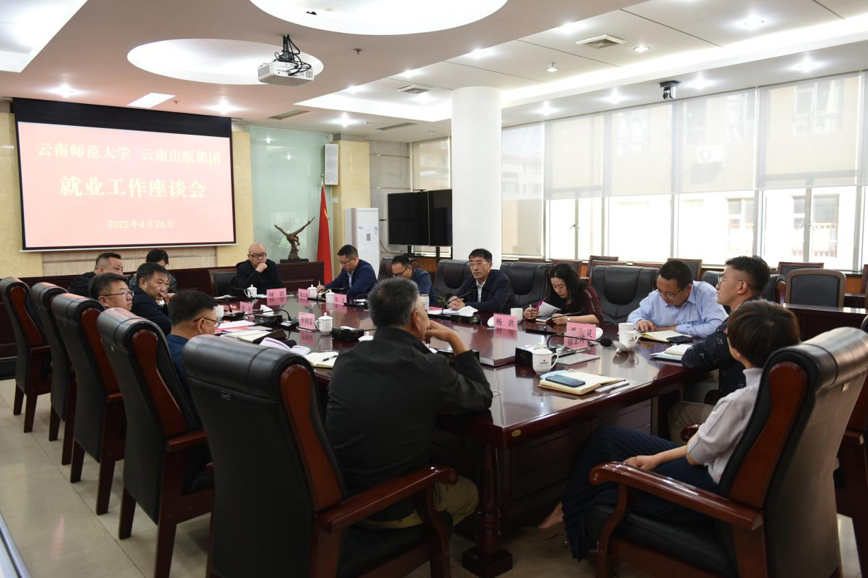 就业是最大的民生,为贯彻落实《教育部办公厅关于开展全国高校书记校长访企拓岗促就业专项行动的通知》和《365英国上市官网访企拓岗促就业行动方案》文件精神,切实做好2022届毕业生就业工作,4月26日上午,校党委副书记张玮一行赴云南出版集团有限责任公司开展访企拓岗促就业调研交流,校党委组织部、就业处、教育学部、经济与管理学院、美术学院、历史与行政学院相关负责人参加了调研。