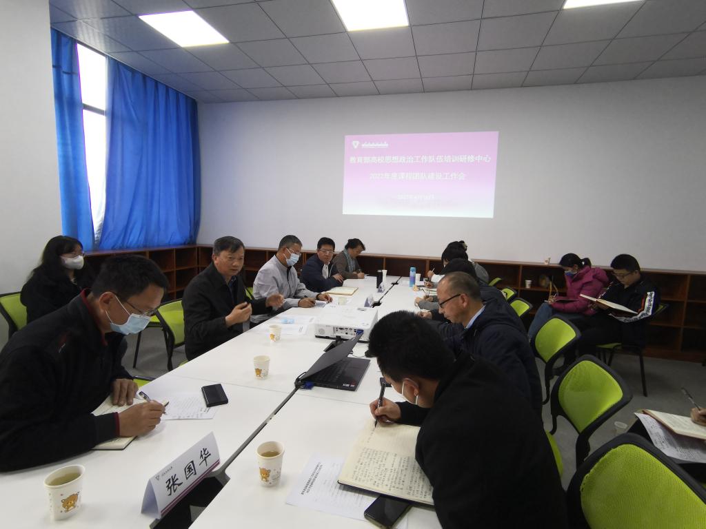 学生处张国华处长就通过课程团队建设服务辅导员队伍能力素质提升作了发言。他指出,各团队要凝聚全校辅导员和班主任等力量,着力打造我校思政队伍和学生工作品牌,努力形成在全省乃至全国可推广、可借鉴的经验。要聚焦思政队伍可持续发展,精准选用和研发教材,科学设计课程体系,引入先进的教学方法,提升做学生思想政治工作的能力。思政中心办公室就团队建设有关工作作了发言,要求各团队要学深悟透习近平总书记关于高校思想政治工作的重要论述,坚持理论指导与解决实际问题相结合,深入调研,坚决克服闭门造车、重申报、轻建设等问题;要按照“理论+案例+方法”的建设导向,认真吸收借鉴教育部思政司组织编写的有关教材和研究成果,充分吸纳专家和一线工作者的意见,加强团队间协同配合,努力产出高质量、独创性、有特色的成果。