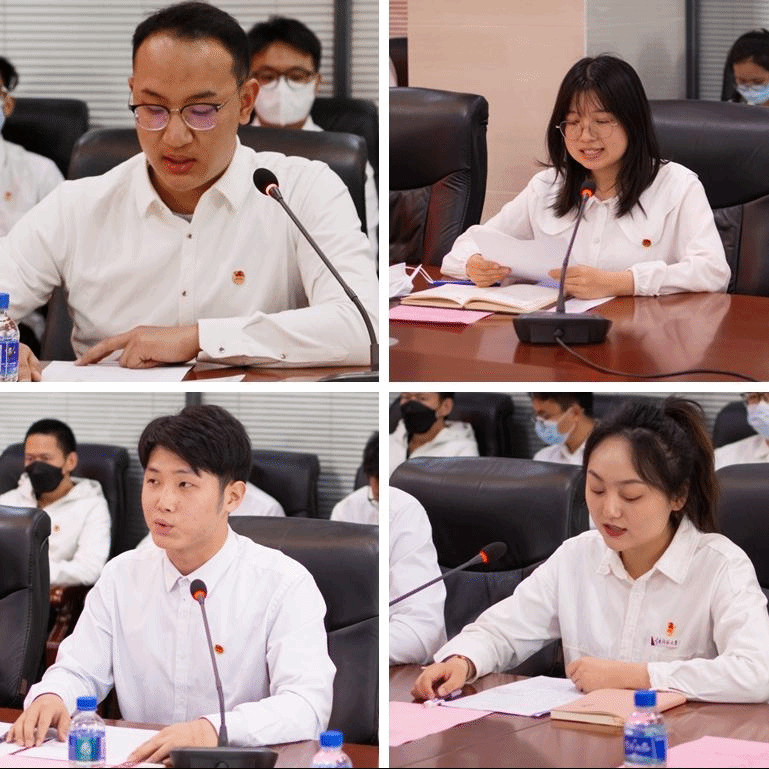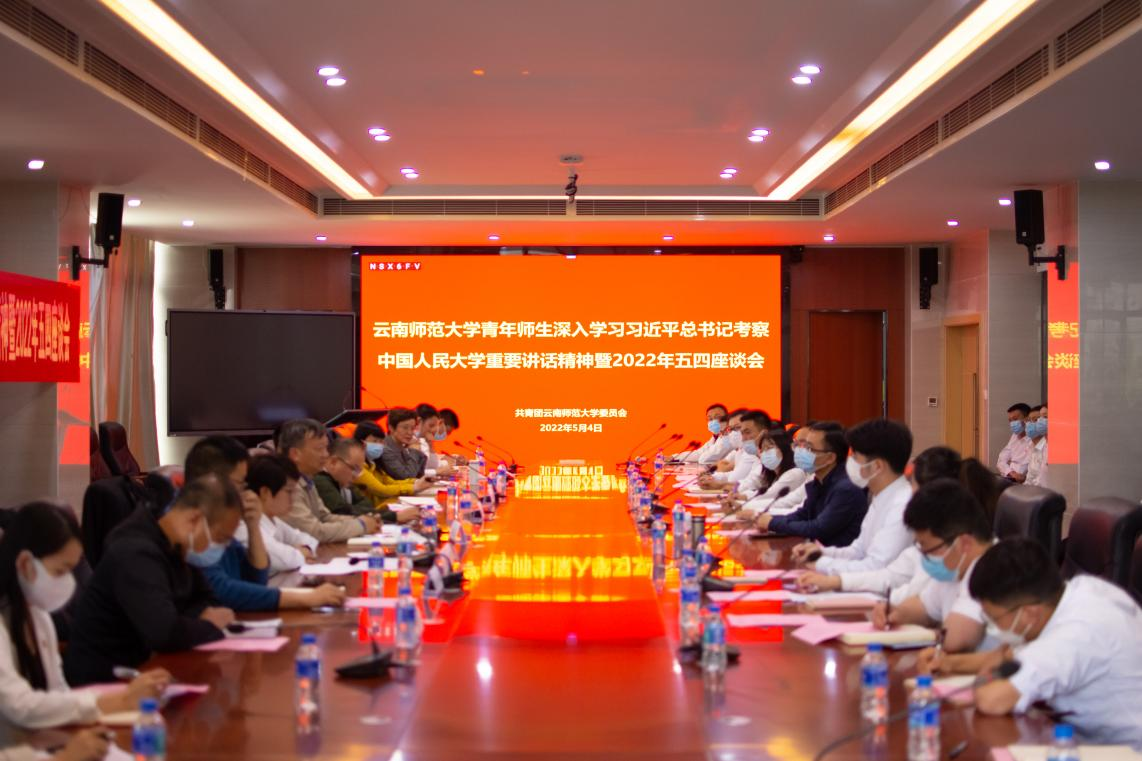 为深入学习贯彻习近平总书记考察中国人民大学重要讲话精神,庆祝五四青年节,365英国上市官网青年师生深入学习习近平总书记考察中国人民大学重要讲话精神暨2022年五四座谈会于5月4日下午在呈贡主校区能源与环境科学学院二楼会议室召开。校党委副书记李宏,党委办公室、党委宣传部、教务处、学生处、研究生处、马克思主义学院等单位相关负责人,校团委全体成员,各学院(学部)团委书记,部分青年教师和学生代表参加会议。座谈会由校团委书记郑伟俊主持。
