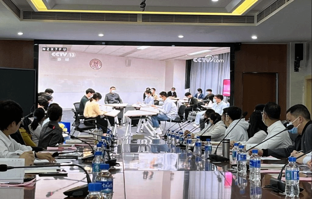 全体参会人员首先观看了中共中央总书记、国家主席、中央军委主席习近平于2022年4月25日考察中国人民大学的“新闻联播”报道视频。