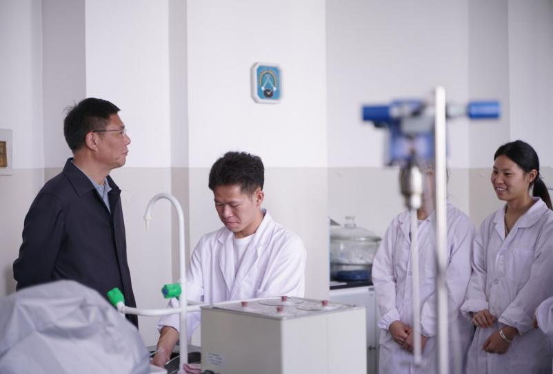 职业技术教育学院党委书记刘虹、院长杨智就学院专业优化调整、师资队伍建设、社会服务、招生就业等情况以及存在的主要问题作了详细汇报。随后,王校长实地调研学院实验室、实训室,了解实验实训室建设及使用情况,并与学生亲切交谈,深入了解同学们的学习、生活、考研、就业等情况。