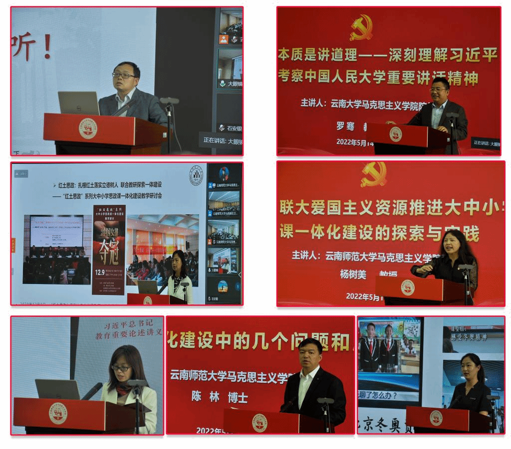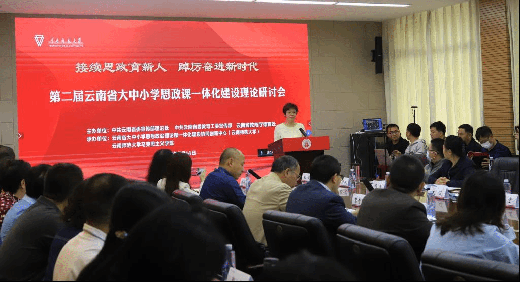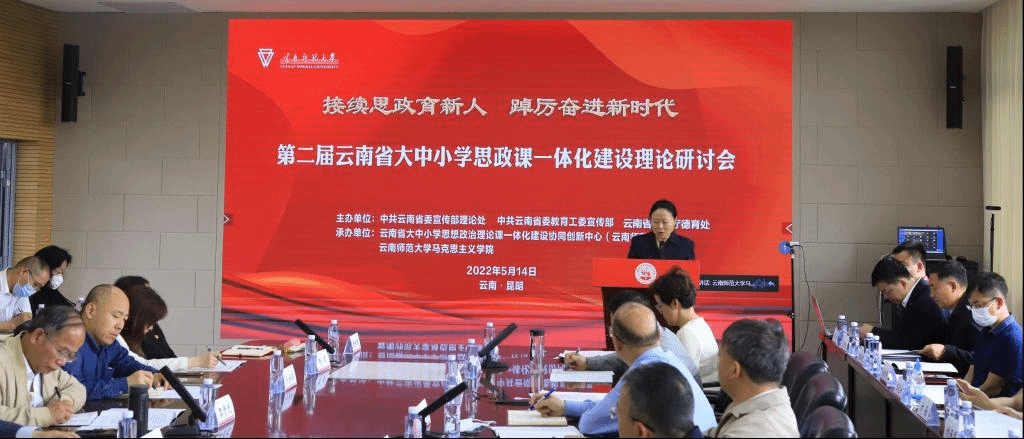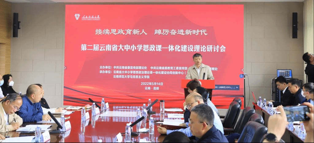 5月14日,由中共云南省委宣传部理论处、中共云南省委教育工委宣传部、云南省教育厅德育处主办,云南省大中小学思想政治理论课一体化建设协同中心(365英国上市官网)、云南师范大学承办的第二届云南省大中小学思想政治理论课一体化建设理论研讨会在我校呈贡主校区举行。本次研讨会以“接续思政育新人 踔厉奋进新时代”为主题,旨在深入贯彻落实习近平总书记关于学校思政课建设重要讲话精神和考察调研中国人民大学重要讲话精神,接续推进思政课建设,落实立德树人根本任务、培养时代新人,推动大中小学思政课一体化建设内涵式发展。