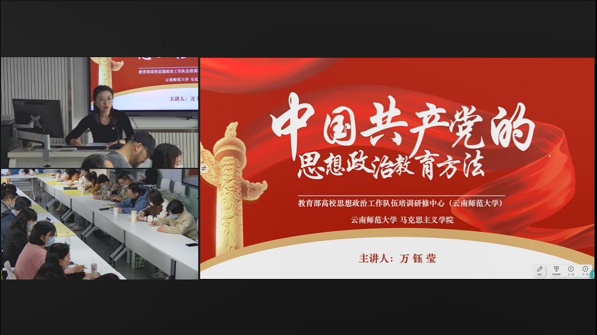 2022年5月12日下午,我校教育部高校思想政治工作队伍培训研修中心举行“党的思想政治教育方法”专题讲座集体备课会,校党委副书记李宏、副校长蔡金红,思政中心办公室、校团委、马克思主义学院、历史与行政学院、美术学院主要负责人、有关专家及思政中心12个教学团队负责人参加集体备课。