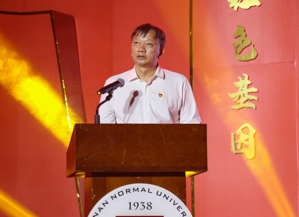 李宏副书记致辞,代表学校党委向新入团的团员青年们致以热烈祝贺。希望全体云师青年和团学组织高举习近平新时代中国特色社会主义思想伟大旗帜,认真学习贯彻习近平总书记在庆祝中国共产主义青年团成立一百周年大会上的重要讲话精神,牢记领袖嘱托,勇担历史使命,为实现第二个百年奋斗目标、实现中华民族伟大复兴的中国梦而不懈奋斗。他向云师青年学子提出了四点希望:一是要信仰坚定,志存高远,让理想信念在创业奋斗中升华,让青春在创新创造中闪光;二是要刻苦学习进步,增强本领,在开拓进取中创造非凡业绩,创造属于自己的精彩人生;三是要积极创新创业,担当奉献,勇于投身基层实践,让创新成为青春远航的动力,让创业成为青年搏击的能量;四是要锤炼高尚品德,严于律己、修身立德,打牢道德根基,在人生道路上走得更正,走得更远。