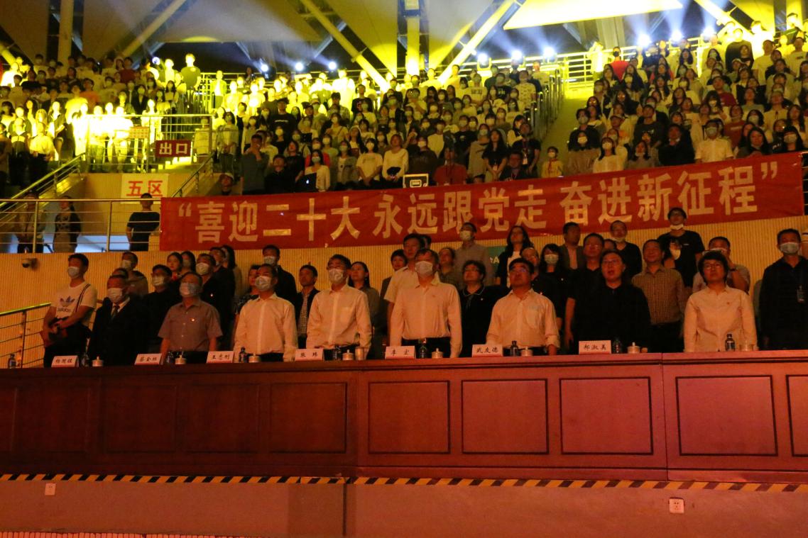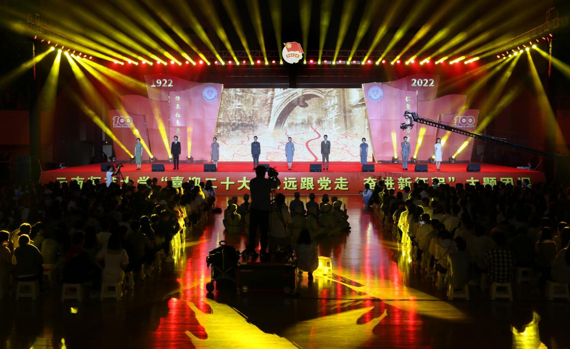 传承红色基因,汇聚奋进力量。为喜迎党的二十大胜利召开,庆祝中国共产主义青年团成立一百周年,由校团委主办的365英国上市官网“喜迎二十大 永远跟党走 奋进新征程”主题团课于2022年5月26日晚在呈贡主校区西区体育馆举行。校党委副书记张玮、李宏,纪委书记王志刚,副校长武友德、蔡金红、郝淑美,学校各职能部门负责人,以及各学院(学部)团委书记、师生代表等参与主题团课系列活动。