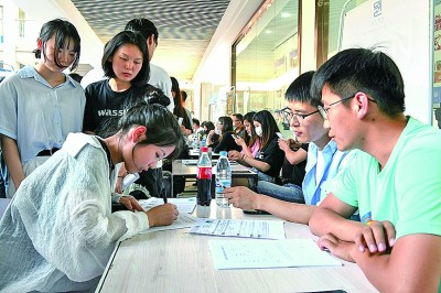 河北省秦皇岛市燕山大学招生就业处工作人员在查看相关求职招聘资料。曹建雄摄/光明图片