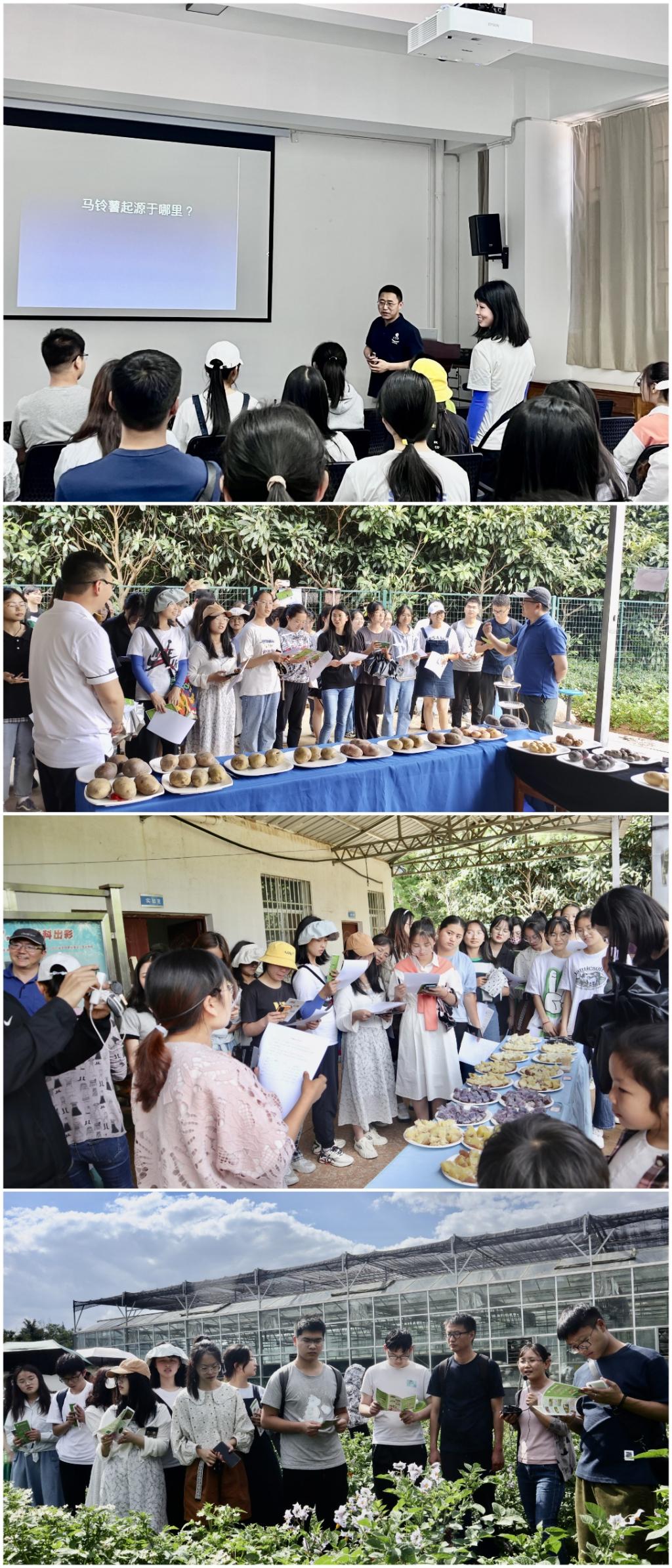 马铃薯校内育种基地内,由王洪洋、高冬丽老师分别就重点实验室多年来选育四倍体、二倍体马铃薯优良品系等成果及试验田间多彩的马铃薯花进行介绍和观察。同时,参加活动人员对6个马铃薯品种进行感官品尝,并通过现场打分评选出最优马铃薯品种。活动现场气氛活跃,在讲解老师的有趣带动下,参与人员热情投入,积极互动,更全面地体验到马铃薯独特的风味。