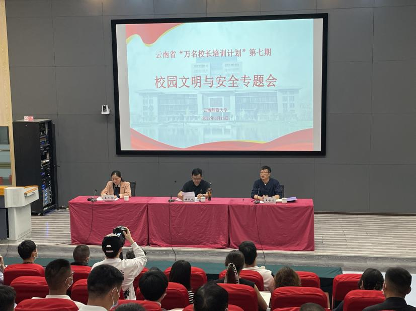 6月15日,云南省“万名校长培训计划”第七期校园文明与安全专题会在我校呈贡主校区召开,主会场设在国家教师教育教学实验中心214报告厅,分会场设在国家教师教育教学实验中心的20个培训教室。我校副校长甘健侯、云南省“万名校长培训计划”项目办主任王世波、副主任姜元涛等参加会议。会议由项目办主任王世波主持。