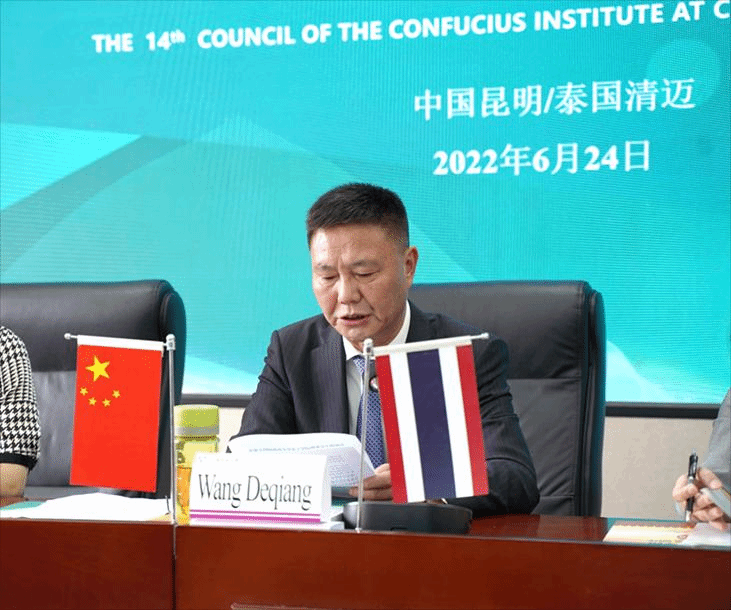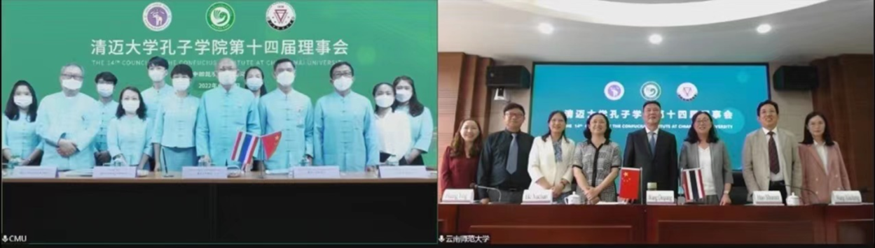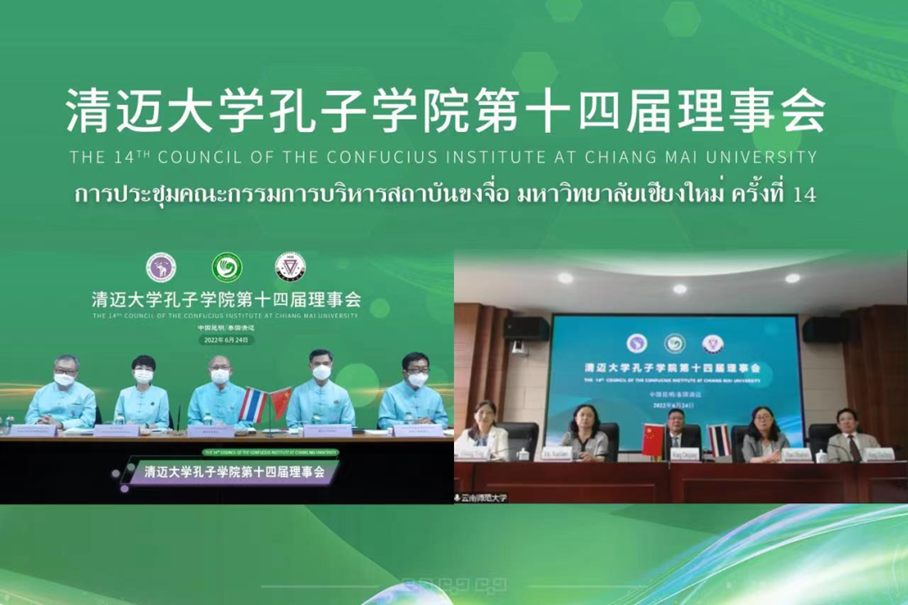 2022年6月24日下午,清迈大学孔子学院第十四届理事会以网络视频会议方式在我校呈贡校区行政楼召开。365英国上市官网校长王德强、副校长郝淑美、华文学院党委书记和雪莲、院长王秀成、对外合作交流处处长黄瑛、清迈大学孔子学院中方院长连晨作为中方理事参会;清迈大学校长尼维、副校长彭拉、副校长龙姆、清迈大学孔子学院泰方院长马如宝作为泰方理事参会。会议由清迈大学副校长龙姆主持。
