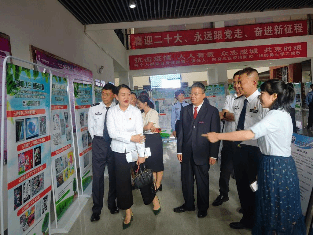 6月26日,我校受昆明市禁毒委邀请,参加了昆明市2022年“6.26”国际禁毒日现场宣传活动。省禁毒委副主任、省公安厅党委委员、省公安厅副厅长胡水旺,省公安厅党委委员、昆明市副市长、市禁毒委主任、市公安局局长徐云等省市领导参观了我校禁毒教育工作成果展,对我校禁毒教育工作给予了充分的肯定。我校体育学院参演的节目《毒品退!退!退!》和《无毒有我》获得了一致好评。