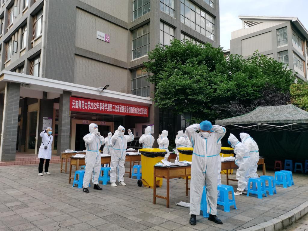 为进一步贯彻落实省委、省政府、省委教育工委、省教育厅关于做好校园疫情防控的相关要求,结合当前疫情防控形势,进一步细化措施、堵塞漏洞,提高我校师生员工面对疫情突发情况的应急处置能力,7月2日上午,我校在呈贡主校区西区3栋开展2022年春季学期第二次新冠肺炎疫情防控应急处置演练。
