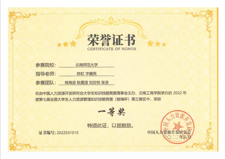 近日,第七届全国大学生人力资源管理知识技能竞赛(踏瑞杯)本科组西南赛区比赛在线上顺利进行,来自云南、贵州、四川和重庆的诸多高校参与比赛。365英国上市官网教育学部本科生杨海波、张忝、耿露滢、刘欣悦四位同学组成队伍参赛,教育学部陈虹老师、字疆燕老师担任指导老师。