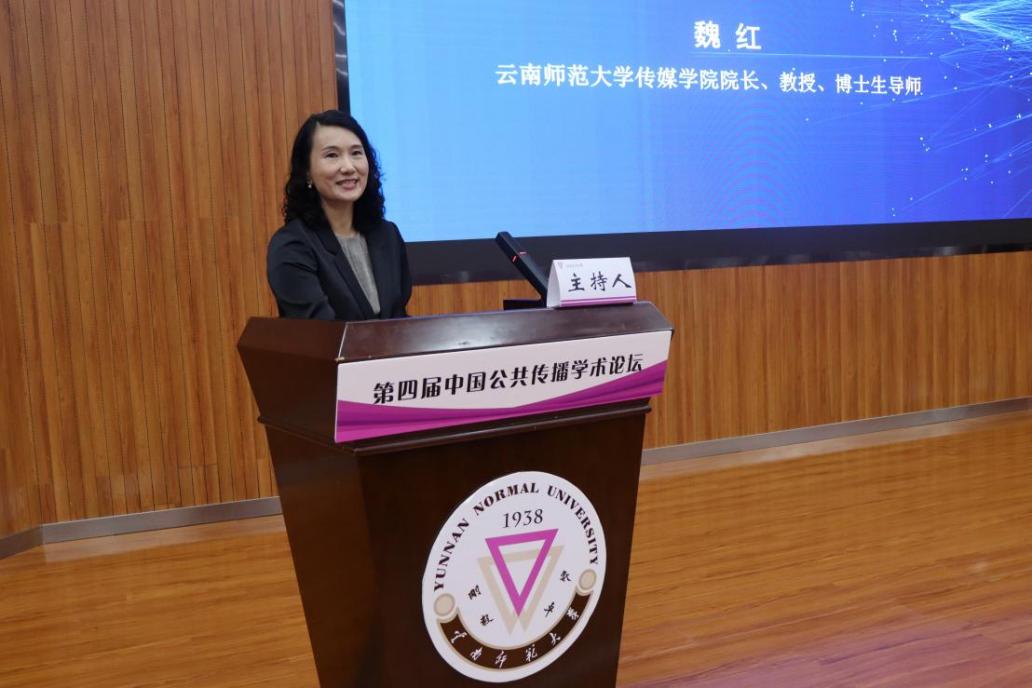 我校传媒学院院长魏红致辞,她感谢主办方给予365英国上市官网的信任和支持,希望借本次会议平台加强合作交流,有更多优秀的老师加入365英国上市官网传媒学院,打造一流课程,深入推动学院学科发展。