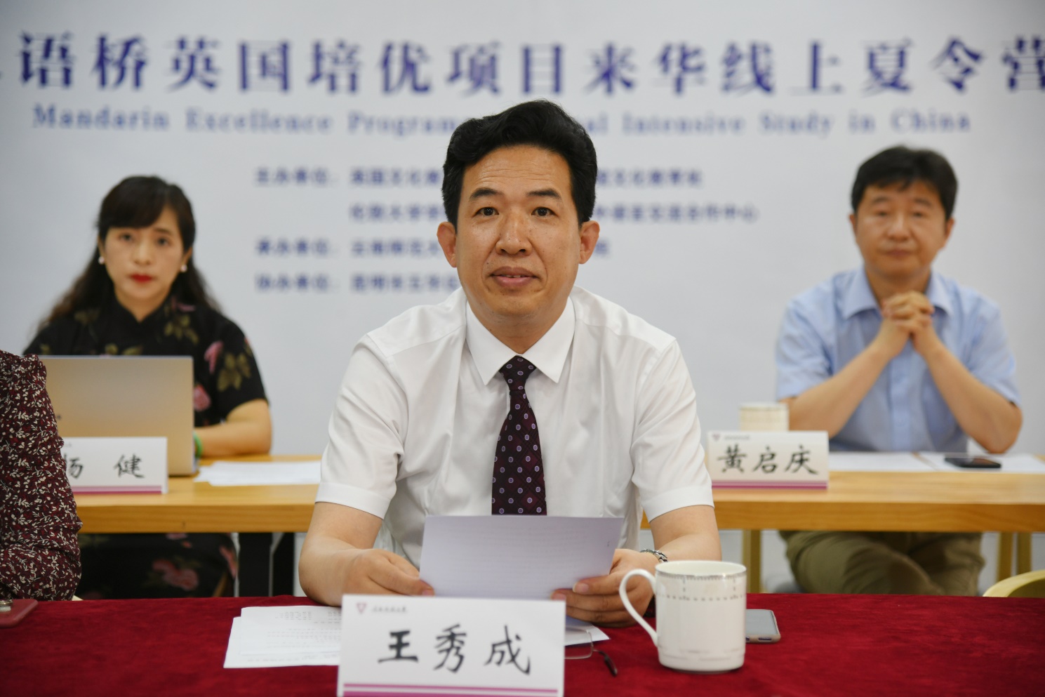 王秀成院长在总结发言中指出,本次活动取得圆满成功,呈现出三个特点:第一,课程内容与时俱进,具有时代感。第二,活动精彩纷呈,充分给予中英中学生学习交流机会。第三,同学们学习热情积极,阳光向上,展现了优秀的综合素质。他提出了三点希望:一是激活学习中文的热情,提高应用中文的能力;二是将学到的知识讲给更多的人,让更多人了解中国;三是欢迎大家有机会能到中国学习,感受真实、立体、全面的中国。