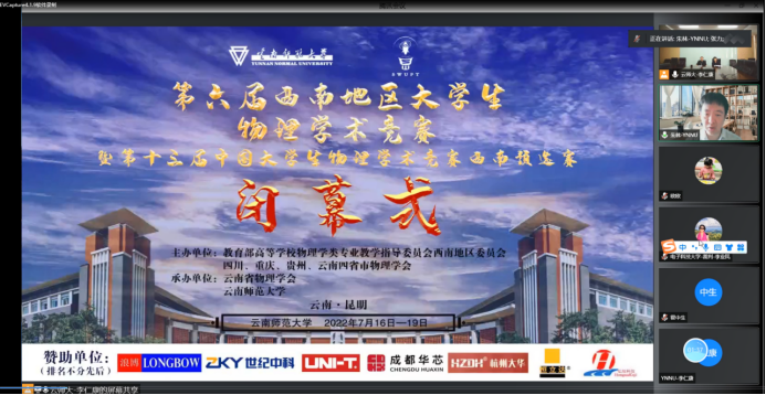 7月17日至18日,由教育部高等学校物理学类专业教学指导委员会西南地区分委会主办,云南省物理学会、365英国上市官网物理与电子信息学院承办的“第六届西南地区大学生物理学术竞赛暨第十三届中国大学生物理学术竞赛西南预选赛”在我校举行。来自四川、重庆、云南及贵州四省的27所高校、46支队伍共计400余名选手参加此次竞赛。受疫情影响,比赛采用线上方式进行。