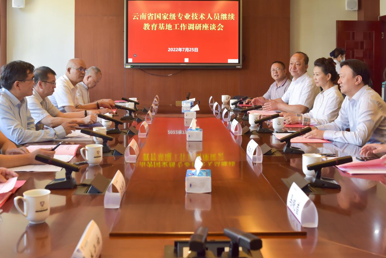 7月25日,人力资源和社会保障部专技司在我校举行云南省国家级专业技术人员继续教育基地工作调研座谈会。人力资源和社会保障部专技司二级巡视员高擎,云南省人力资源和社会保障厅副厅长熊梅、专技处处长李伟、专技处副处长张庆海等领导,以及云南省4家国家级专业技术人员继续教育基地相关负责人参加了座谈会。