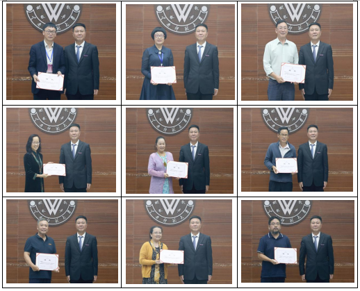 陈新和韦颖分别代表教务处和教学质量监控与评估中心感谢教学督导对学校本科教学质量提供了有效的保障,并希望新一届教学督导继续加强合作,创新督导工作机制,强化督导工作重点,深化督查问题反馈,充分发挥好教学督导工作的重要作用,为推动学校的教育教学改革发展作出贡献。