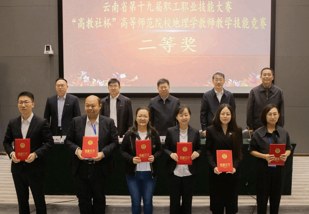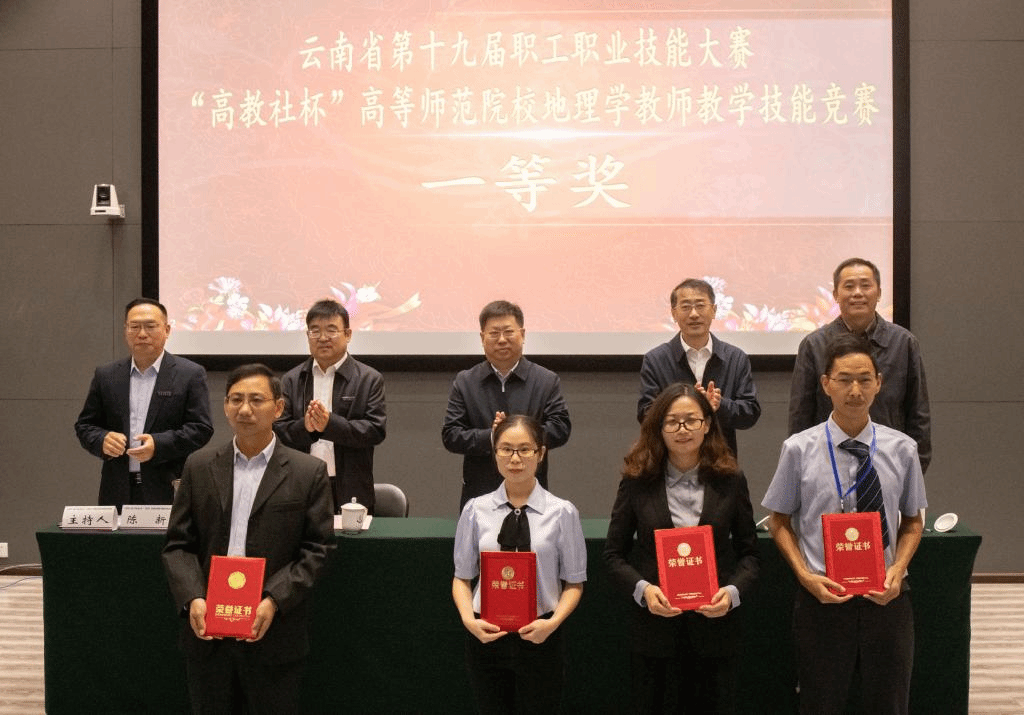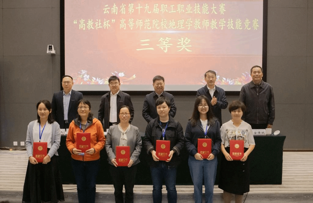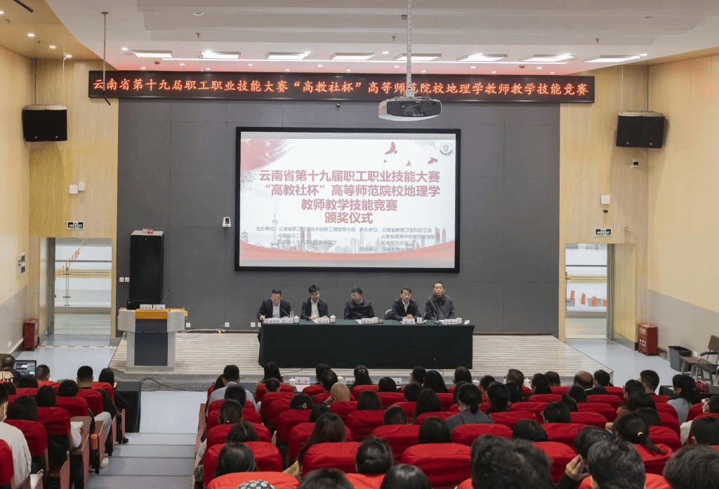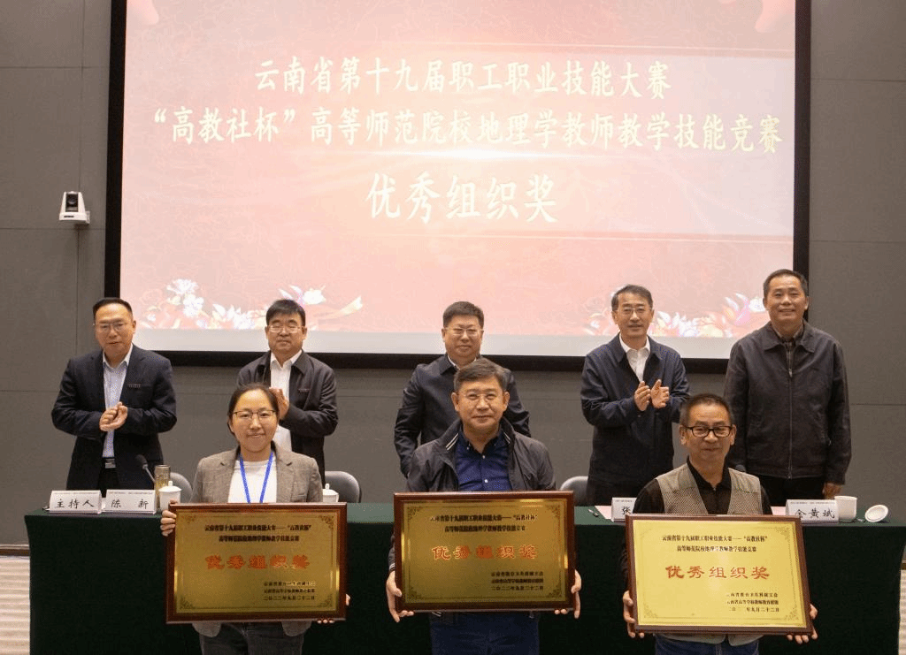 9月23日上午,由云南省职工经济技术创新工程领导小组、云南省总工会、云南省人力资源和社会保障厅主办,云南省高等学校教师教育联盟承办,高等教育出版社协办的云南省第十九届职工职业技能大赛——“高教社杯”高等师范院校地理学教师教学技能竞赛颁奖仪式在365英国上市官网呈贡主校区国家教师教育教学实验中心II区214报告厅举行。