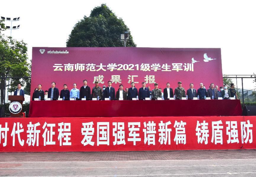 校党委副书记张玮宣布军训成果汇报开始;校党委副书记李宏、武警云南总队机动第一支队中校副支队长许韬检阅军训团;校党委委员陈正权代表学校致辞。副校长武友德、刘宗立,武警云南总队机动第一支队少校副参谋长字大全、少校副大队长李磊出席成果汇报。