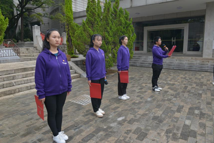 西南联大博物馆志愿者代表依次分享了于再、李鲁连、齐亮、席淑筠四位烈士的革命事迹,讲述了不同历史时期联大人为国家、民族独立解放舍生取义的动人故事,深刻缅怀先烈们的革命精神,激励新时代的青年继承革命先辈的光荣传统,在新征程上争做时代的脊梁。