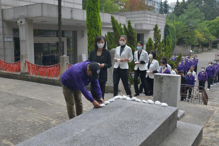 上午8时30分,烈士纪念活动正式开始,全体肃立,奏唱中华人民共和国国歌。随后,参加活动的师生们向烈士默哀,行鞠躬礼,全体人员瞻仰烈士墓,并向烈士献花,向英烈致敬。