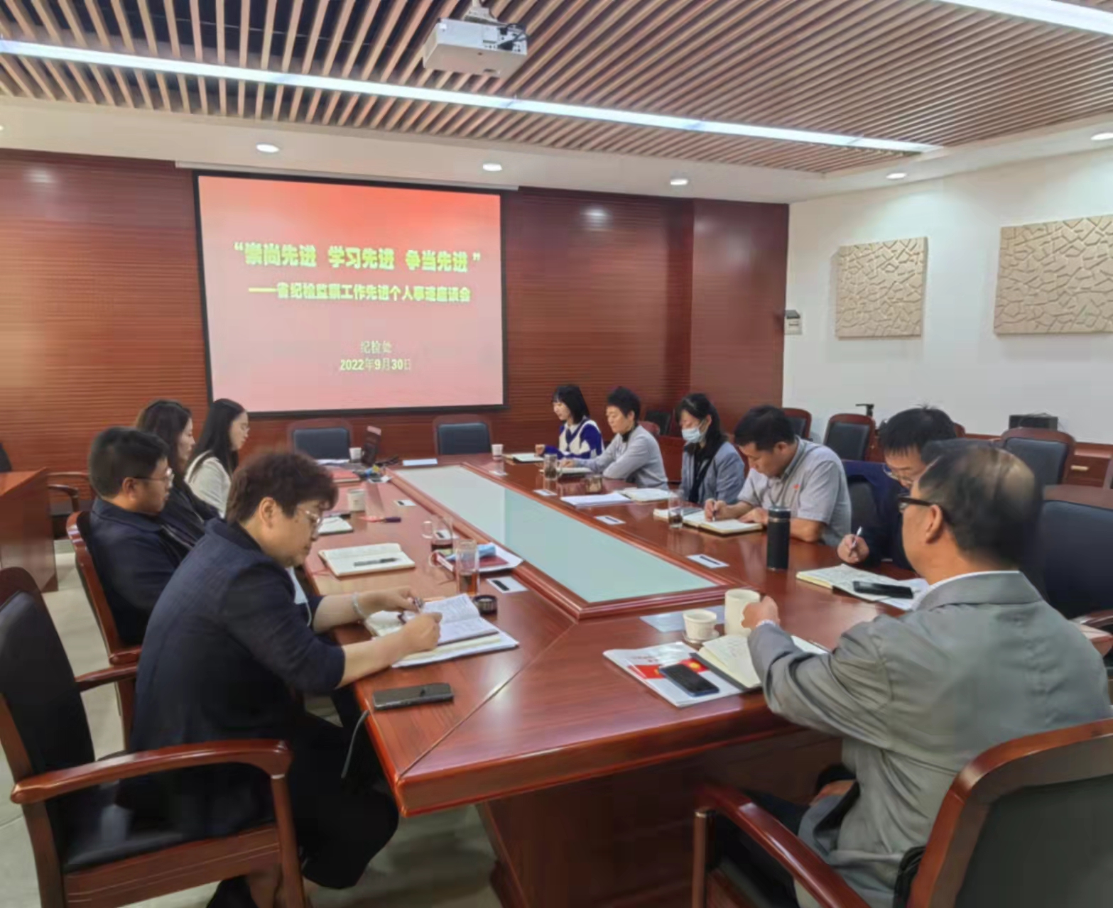 高腾向与会同志分享自己的工作经验和体会。大家深受教育和启发,一致表示要崇尚先进、学习先进、争当先进,始终对党忠诚、坚定跟党奋斗,坚持秉公用权、依法用权、廉洁用权、为民用权,展现纪检监察干部忠诚干净担当、可亲可信可敬的的良好形象,以创新务实的精神推动新时代纪检监察工作高质量发展,创造无愧于党和人民的新业绩。同时更要牢记初心使命,发扬斗争精神,增强斗争本领,锤炼优良作风,自觉锚定推动纪检监察工作高质量发展主线,不断提高一体推进“三不腐”能力和水平,坚定不移正风肃纪反腐,推动党风廉政建设和反腐败工作向纵深发展。