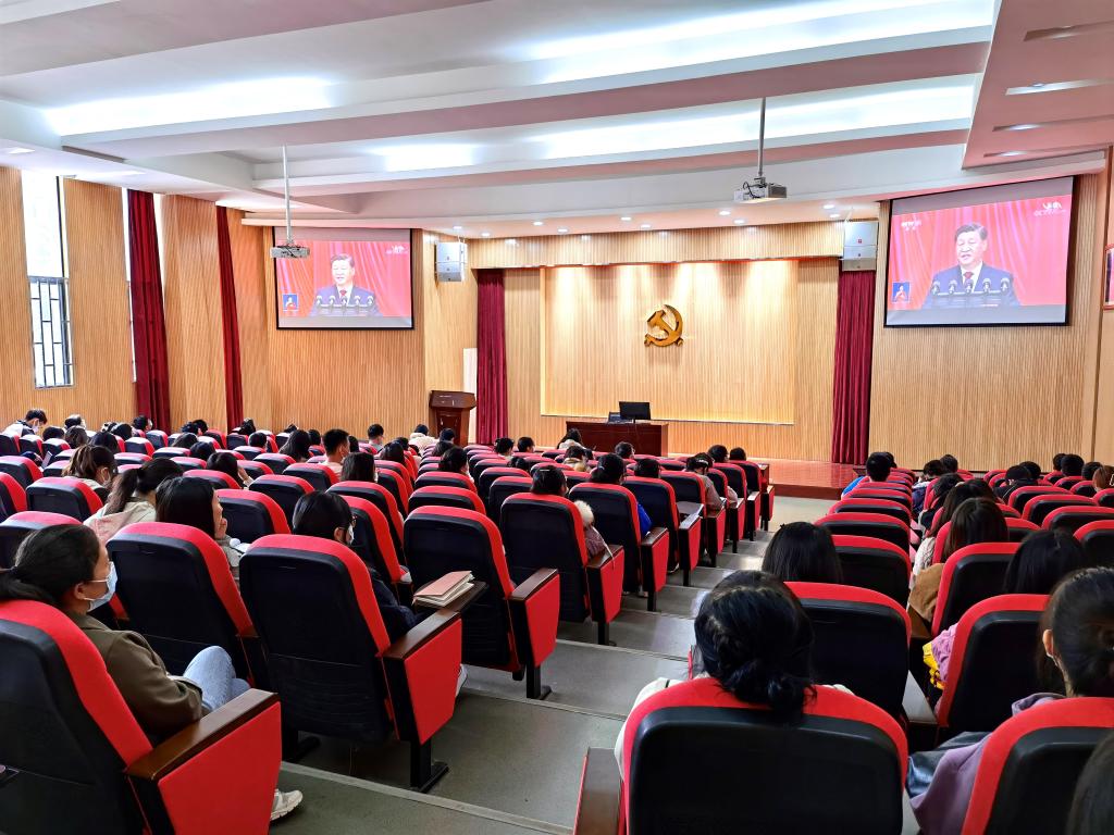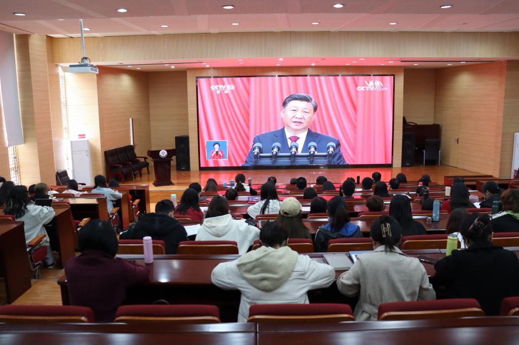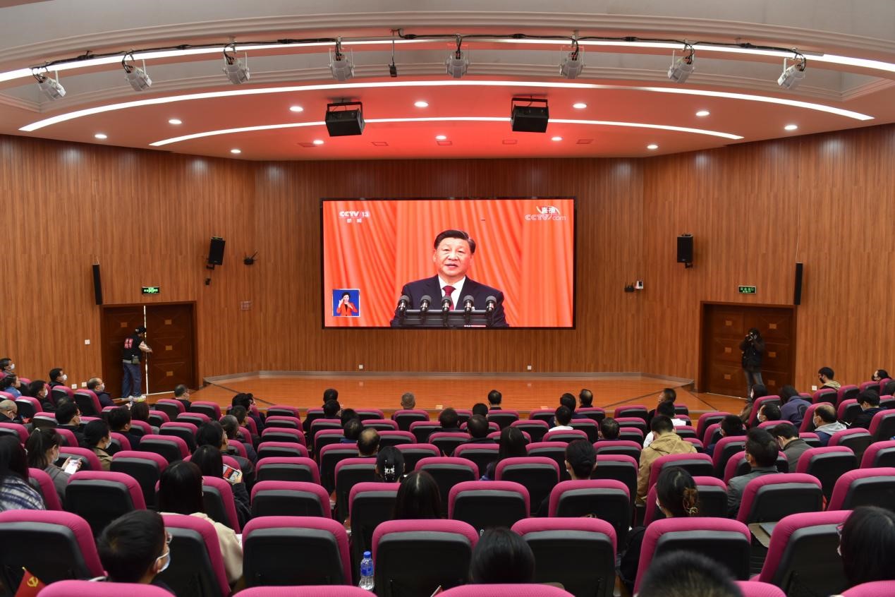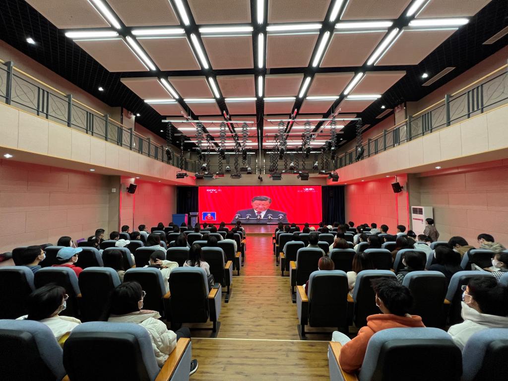 上午10时,我校党员干部和广大师生员工以高昂的精神风貌和饱满的热情收听收看大会实况,共同见证这激动人心的历史时刻。