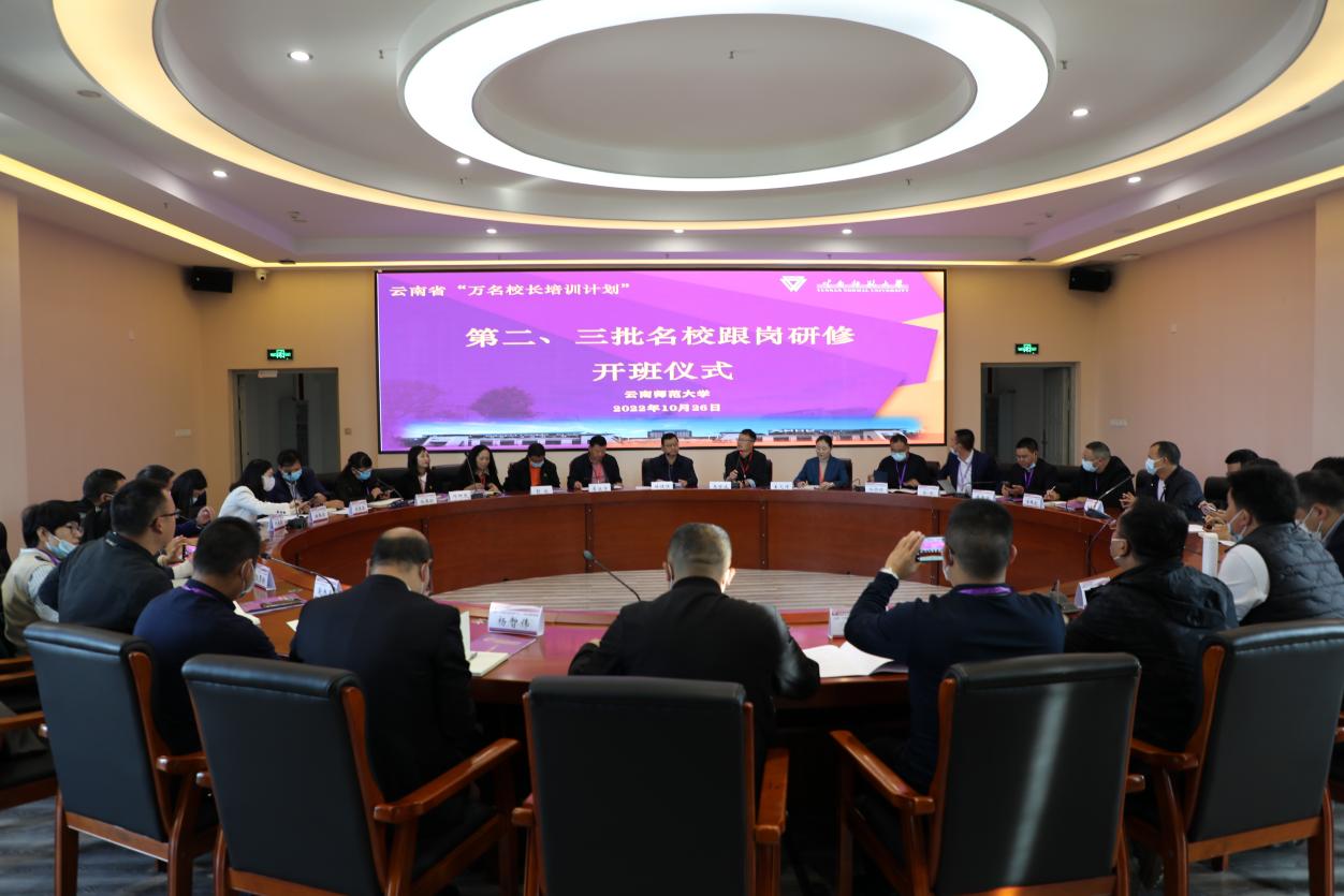 10月26日,云南省“万名校长培训计划”第二、三批名校跟岗研修开班仪式在我校呈贡校区国家教师教育教学实验中心举行。副校长甘健侯,万名校长培训计划项目办公室主任王世波,副主任翟波宇、姜元涛,项目办全体工作人员及来自全省各州市的38名参训学员参加了开班仪式。