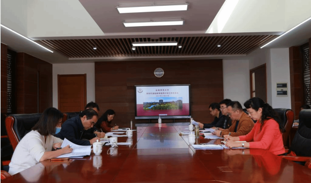 为贯彻落实教育部等八部委印发的《新时代基础教育强师计划》和《关于云南省新时代基础教育强师计划的实施意见》文件精神,10月28日下午,我校在呈贡校区行政楼会议室召开新时代基础教育强师计划工作布置会。会议由副校长武友德主持,副校长甘健侯,教务处、人事处、研究生院、基础教育集团、继续教育学院负责人以及教务处相关人员参加会议。