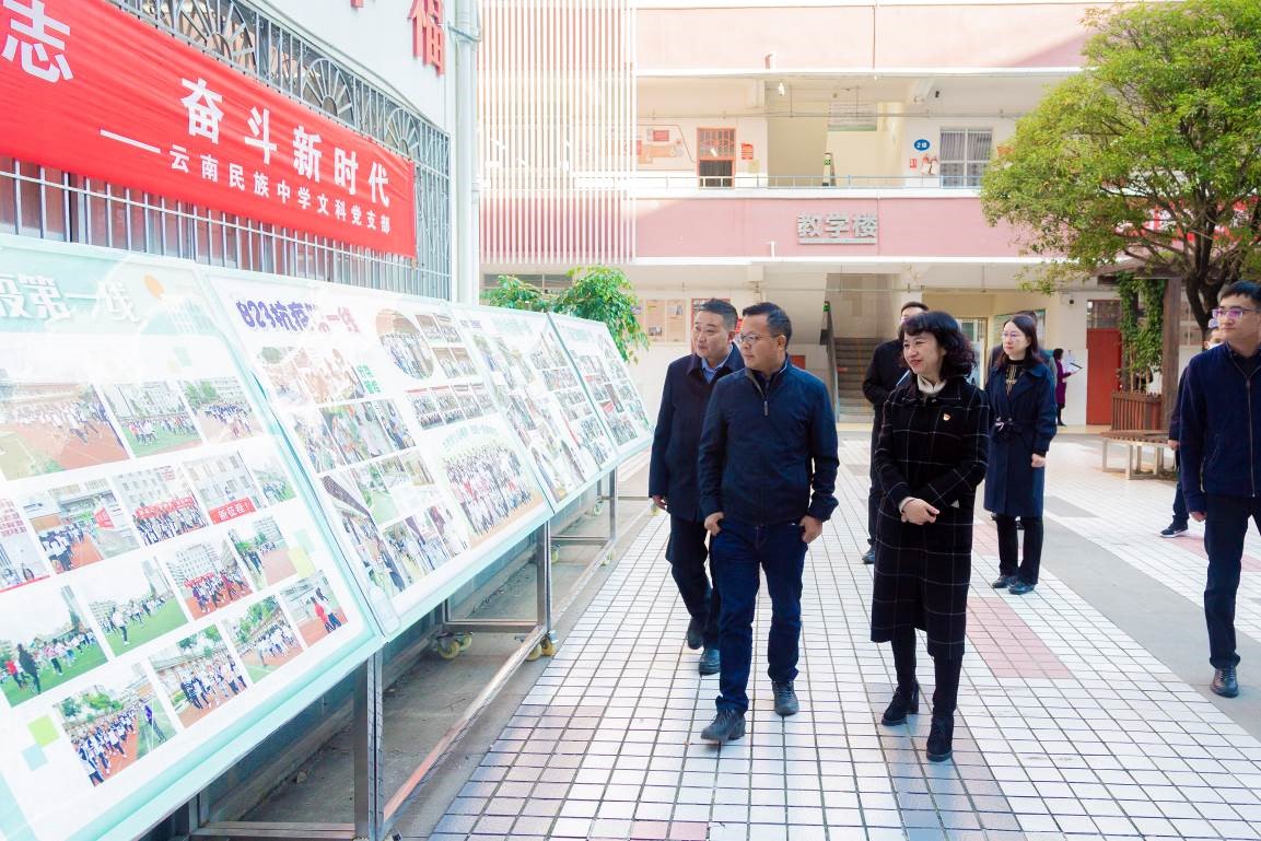 孟庆红走访了云南民族中学运动场、食堂、教学楼等场地,深入了解学校教学环境、校园安全等各项工作。云南民族中学党委书记、校长邹飒从学校的办学历史、办学特色、党建工作、教育教学、师资队伍建设、校园安全等方面汇报了学校的办学情况及发展现状。