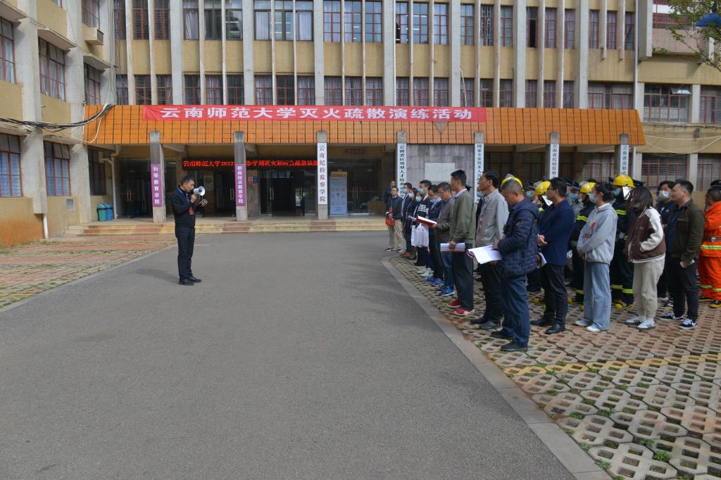 最后,牛治亮对本次应急疏散演练情况进行了总结和点评,对积极参与本次疏散演练的师生和对本次活动给予大力支持的应急管理部消防救援局昆明训练总队表示感谢,对应急疏散过程中存在的问题进行了点评,针对联大校区老旧的实际,要求全校师生四懂(懂得岗位火灾的危险性、懂得预防火灾的措施、懂得扑救火灾的方法、懂得逃生疏散的方法)、四会(会使用消防器材、会报火警、会扑救初起火灾、会组织疏散逃生)、提升消防安全的四种能力(提高检查消除火灾隐患能力,切实做到“消防安全自查、火灾隐患自除”;提高组织扑救初起火灾能力,切实做到“火情发现早、小火灭得了”;提高组织人员疏散逃生能力,切实做到“能火场逃生自救、会引导人员疏散”;提高消防宣传教育培训能力,切实做到“消防设施标识化、消防常识普及化”),共建安全校园。